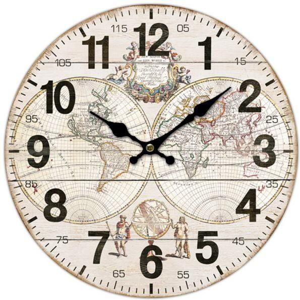 Dakls Drewniany Zegar Arabskie Cyfry Globus Świat Beżowy 15410 Rybnik