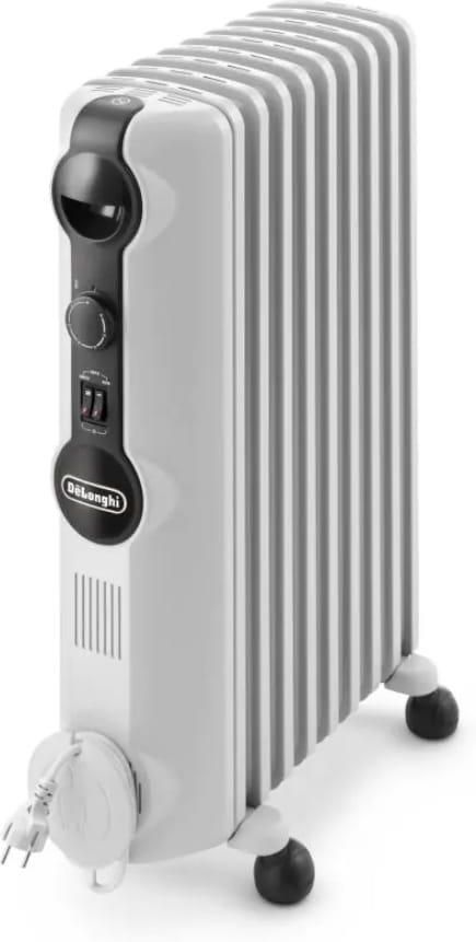 GRZEJNIKI OLEJOWE De'longhi TRRS0920C Grzejnik Radia S Długotrwałe ciepło w pomieszczeniach do 60 m3 dzięki dużej bezwładności cieplnej oleju wewnątrz urządzenia. Ciche, równomiernie rozprowadzające się po całym pokoju ogrzewanie. Łatwa regulacja temperatury i mocy za pomocą pokręteł. Bezproblemowe przemieszczanie urządzenia dzięki wstępnie zmontowanym, składanym kółkom samonastawny Długotrwałe ciepło Podgrzany olej utrzymuje temperaturę, zapewniając długotrwałe ciepło. Nawet po wyłączeniu urządzenia olej przez pewien czas uwalnia nagromadzone ciepło. Technologia Real Energy Maksymalizuje wydajność poprzez stałe zwiększanie temperatury do momentu osiągnięcia żądanej wartości, dzięki czemu ogrzewanie domu jest szybsze i tańsze. Pokrętła regulacji Pokrętła regulacji umożliwiają łatwe ustawianie żądanego ciepła w pomieszczeniu, zapewniając pełną kontrolę nad temperaturą i ustawieniami mocy. Łatwy transport Grzejni jest gotowy do użycia, bez konieczności montażu. Innowacyjne, wstępnie zmontowane, składane kółka samonastawne pozwalają na niezwykle łatwe przenoszenie urządzenia z jednego pomieszczenia do drugiego. a
