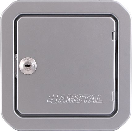 Izolowane drzwiczki rewizyjne wykonane z blachy stalowej, pokryte lakierem proszkowym zabezpieczającym przed korozją. Drzwiczki wyłożone wkładką ceramiczną. Zamykane kluczykiem z zastosowaniem zamka skokowego. - rozmiar rewizji: 140 x 140 mm - kolor: srebrny