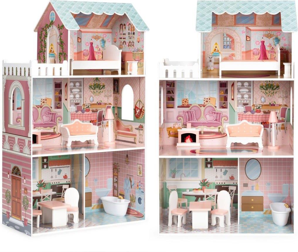 Duży domek dla lalek z kompletem mebelków ECOTOYS DUŻY DOMEK DLA LALEK Dla dzieci od 3 roku życia Bezpieczna dla dzieci konstrukcja Wysokość pozwala na zabawę lalkami typu Barbie Komplet 9 drewnianych mebelków 3 niezależne poziomy, 5 pomieszczeń Odzwierciedlenie prawdziwego domu Zabawka rozwija …