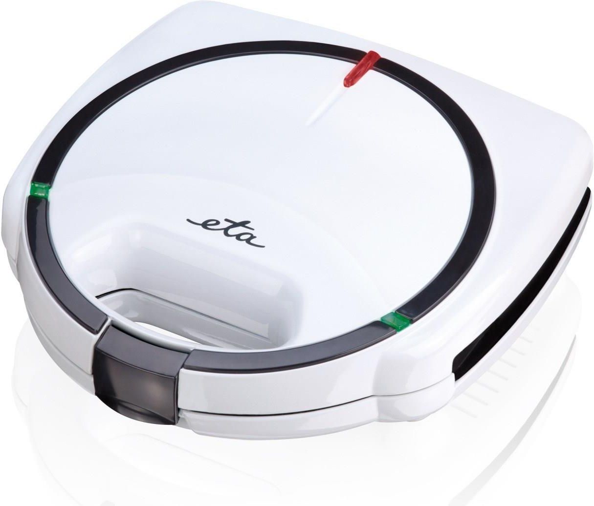 Opiekacz Pievo ETA0151 90000 Powierzchnia opiekacza do kanapek ETA Pievo jest wykonana z wysokiej jakości tworzywa, co zmniejsza ryzyko poparzenia, łatwo się czyści. Można przygotować dwie kanapki naraz. Płytki trójkątne z powierzchnią nieprzylegającą, które minimalizują możliwość przypalenia lub mocnego przypieczenia. Najważniejsze cechy moc - 750 W konstrukcja: 2 kanapki (4 trójkąty) kontrolka zielona temperatury kontrolka czerwona pracy nieprzywierające płytki możliwość przechowywania w pozycji stojącej Ważnymi elementami są dwie kontrolki – sygnalizacja świetlna działania i ogrzewania, a także automatyczna regulacja temperatury. Obudowa posiada izolację, ochronę przed przegrzaniem i nóżki antypoślizgowe. Opiekacz może być przechowywany w pozycji pionowej, zajmuje mało miejsca, a nowoczesny design wzbogaci wygląd każdej kuchni. Wymiary produktu Szerokość: 24,5 cm Wysokość: 9 cm Głębokość: 25 cm Waga: 1,33 kg Wymiary opakowania Szerokość: 26,5 cm Wysokość: 26 cm Głębokość: 10 cm Waga: 1,52 kg Najniższa cena z 30 dni przed obniżką: 89,00 zł