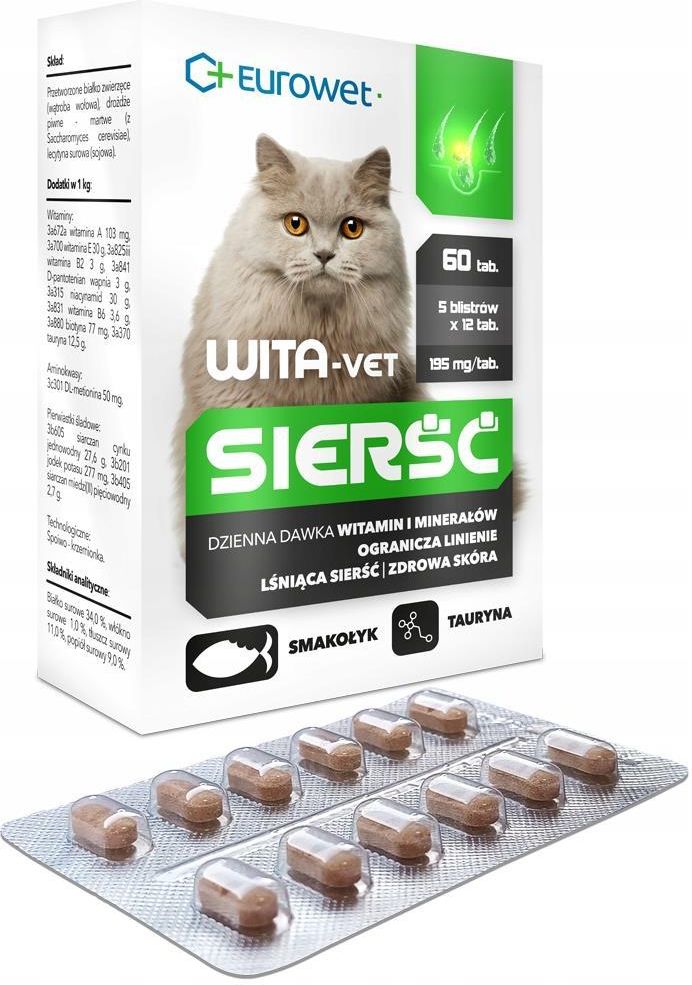 Eurowet Wita-Vet Tabletki Dla Kotów Na Sierść 60 Tabletek Rybnik