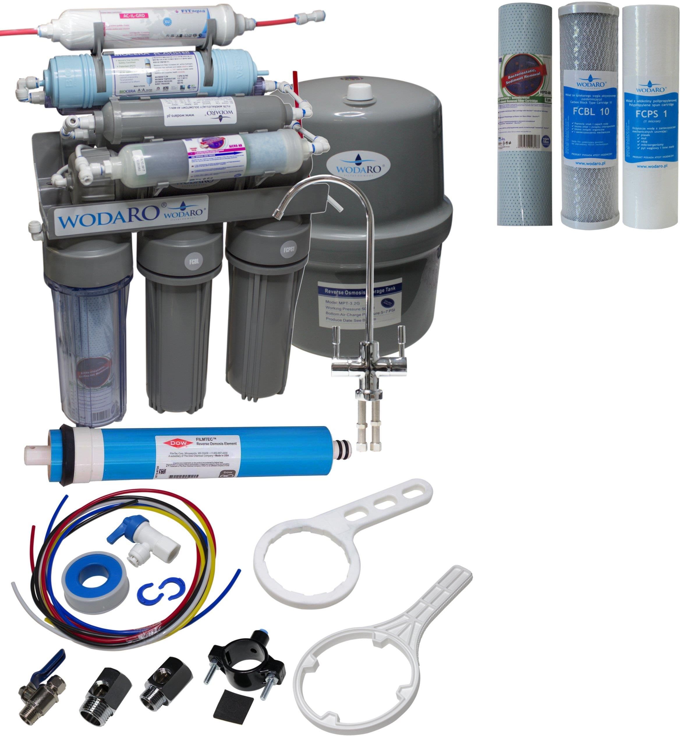 Filtr Wody Osmoza RO10 Graphite Filtr Wody Osmoza RO10 Graphite od producenta wodaRO to nowoczesne rozwiązanie, które znacząco poprawia jakość wody pitnej w Twoim domu. Dzięki zastosowanej technologii filtracji, możesz cieszyć się czystą i zdrową wodą, wolną od zanieczyszczeń, które mogą negatywnie wpływać na Twoje zdrowie. W obliczu problemów związanych z jakością wody w kranach, inwestycja w ten filtr to krok w stronę lepszego samopoczucia i zdrowia. Materiał i montaż Wybierając filtr, warto zwrócić uwagę na materiał konstrukcyjny oraz sposób montażu. System filtracji wodaRO wykonany jest z wysokiej jakości tworzywa, co zapewnia jego trwałość oraz elegancki wygląd. Dzięki innowacyjnym rozwiązaniom, filtr można łatwo zainstalować zarówno pod zlewem, jak i na baterii. Taki wszechstronny montaż sprawia, że filtr doskonale pasuje do różnych aranżacji kuchennych, a jego nowoczesny design będzie idealnie współgrał z innymi sprzętami. Technologia filtracji System filtracji, którym dysponuje filtr osmozy, oparty jest na technologii osmozy. Proces ten skutecznie usuwa z wody różnorodne zanieczyszczenia, takie jak chlor, metale ciężkie oraz mikroorganizmy. Dzięki temu woda pitna staje się nie tylko smaczniejsza, ale również bezpieczniejsza dla zdrowia. Zastosowanie filtrów mechanicznych i węglowych umożliwia efektywną eliminację nieprzyjemnych zapachów i smaków, co sprawia, że woda jest idealna do picia oraz gotowania. Kluczowe cechy filtracji Aby lepiej zrozumieć, co wyróżnia filtr Wody Osmoza RO10 Graphite, zapoznaj się z poniższymi cechami: wysoka wydajność (2 l/min), żywotność wkładu filtrującego (6 miesięcy lub 5000 litrów), łatwy montaż, estetyczny design, skuteczna eliminacja zanieczyszczeń. Wydajność Wydajność systemu filtracji to dodatkowy atut, który przemawia na jego korzyść. Produkt charakteryzuje się przepływem wody na poziomie 2 l/min, co pozwala na szybkie napełnienie butelek czy dzbanków. Żywotność wkładu filtrującego wynosi aż 6 miesięcy lub 5000 litrów, co oznacza, że użytkownicy mogą cieszyć się czystą wodą przez długi czas bez konieczności częstej wymiany. Wymiary filtra, o wysokości 25 cm i średnicy 10 cm, sprawiają, że jest on kompaktowy i łatwy do umieszczenia w każdej kuchni, nawet w tych z ograniczoną przestrzenią. Zawartość zestawu Warto zwrócić uwagę na zawartość zestawu, który zawiera wszystko, co niezbędne do prawidłowego użytkowania filtra. W opakowaniu znajdziemy adaptery, wkład filtrujący oraz instrukcję montażu, co ułatwia instalację i pozwala na szybkie rozpoczęcie korzystania z filtracji wody. Dzięki temu rozwiązaniu, każdy użytkownik ma pewność, że zakupiony produkt jest kompletny i gotowy do działania.