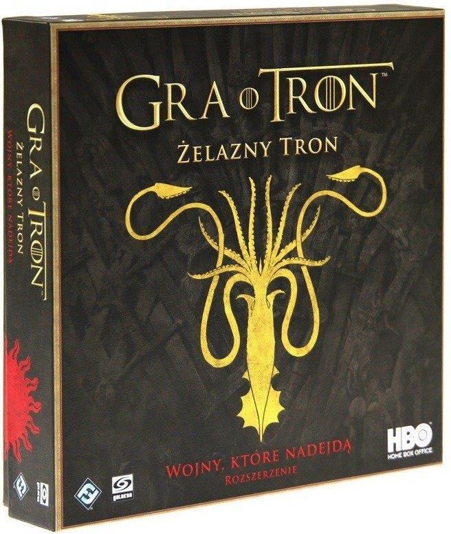Gra o Tron: Żelazny Tron - Wojny, które Nadejdą Wojny, które nadejdą wprowadzają dwa nowe rody – Greyjoyów oraz Martellów wraz z 10 nowymi liderami dla ich stronnictw. Nowe żetony, karty i znaczniki zapewniają wszystko, co potrzebne, do rozpoczęcia rozgrywki dla 7 graczy. Dodatkowo rozszerzenie wprowadza 25 nowych sojuszników, którzy wzbogacą twoje spiski i zagrywki polityczne oraz znacznie zmienią kształt każdej bitwy, a może nawet gry. Nowe rody Greyjoyowie i Martellowie dołączają do konspiracji, bitw i zdrad w Żelaznym Tronie. Podobnie jak 5 Wielkich Rodów z zestawu podstawowego, każdy z nowych rodów wchodzi do gry z 5 arkuszami liderów, 5 żetonami postaci i talią rodu pełną niespodzianek. Jeśli dla twojej taktyki charakterystyczne są śmiałe i agresywne zagrania, liderzy tacy jak Theon Greyjoy i Balon Greyjoy są w stanie wyciągnąć z takich ruchów wiele korzyści. Wygranie pierwszych starć pozwoli zyskać przewagę, która umożliwi łatwiejsze wygranie większości późniejszych bitw. Greyjoyom niewiele korzyści przynosi dyplomacja i wysiłki polityczne – to umiejętne i sprytne dowodzenie pozwala przechylić szalę zwycięstwa na ich stronę i wynagradza za pojmanie zakładników. Spiski Martellów są subtelniejsze i nie tyle skupiają się na wygraniu wyzwania, co na skierowaniu uwagi przeciwnika gdzie indziej. Oberyn Martell dzięki swojej umiejętności gwarantuje, że potencjalni atakujący nigdy w pełni nie posmakują zwycięstwa. Co więcej, dodatkowe dwa rody wchodzące do zmagań o Żelazny Tron zwiększają ilość dostępnych, co oznacza, że do gry o Żelazny Tron będzie mogło przystąpić aż 7 graczy. Do usług Żelazny Tron może znajdować się w Królewskiej Przystani, ale walki o niego toczą się we wszystkich Siedmiu Królestwach i poza ich granicami. Wielkie Rody nie walczą jednak same – wokół nich gromadzą się postaci gotowe służyć swoją pomocą. Wojny, które nadejdą wprowadzają 25 znanych bohaterów, w tym Jona Snowa, Missandei i Syrio Forela, których umiejętności mogą pomóc wyjść z poważnych opresji i poprowadzić gracza prosto do zwycięstwa. Użycie sojuszników w grze jest opcjonalne, jednak gdy gracze zdecydują się dodać ich do gry, każdy zaczyna z jednym sojusznikiem, a następnie może zdecydować, że zamiast standardowej nagrody za wygranie wyzwania, dobiera kolejnych sojuszników. Siedem królestw, siedem rodów, jeden Żelazny Tron. Przygotuj się na nadchodzące bitwy, zbierz nowych sojuszników i rusz na podbój wszystkich Siedmiu Królestw. Zmierz się z 6 innymi graczami i udowodnij, że jesteś wystarczająco silny, by zasiąść na Żelaznym Tronie.