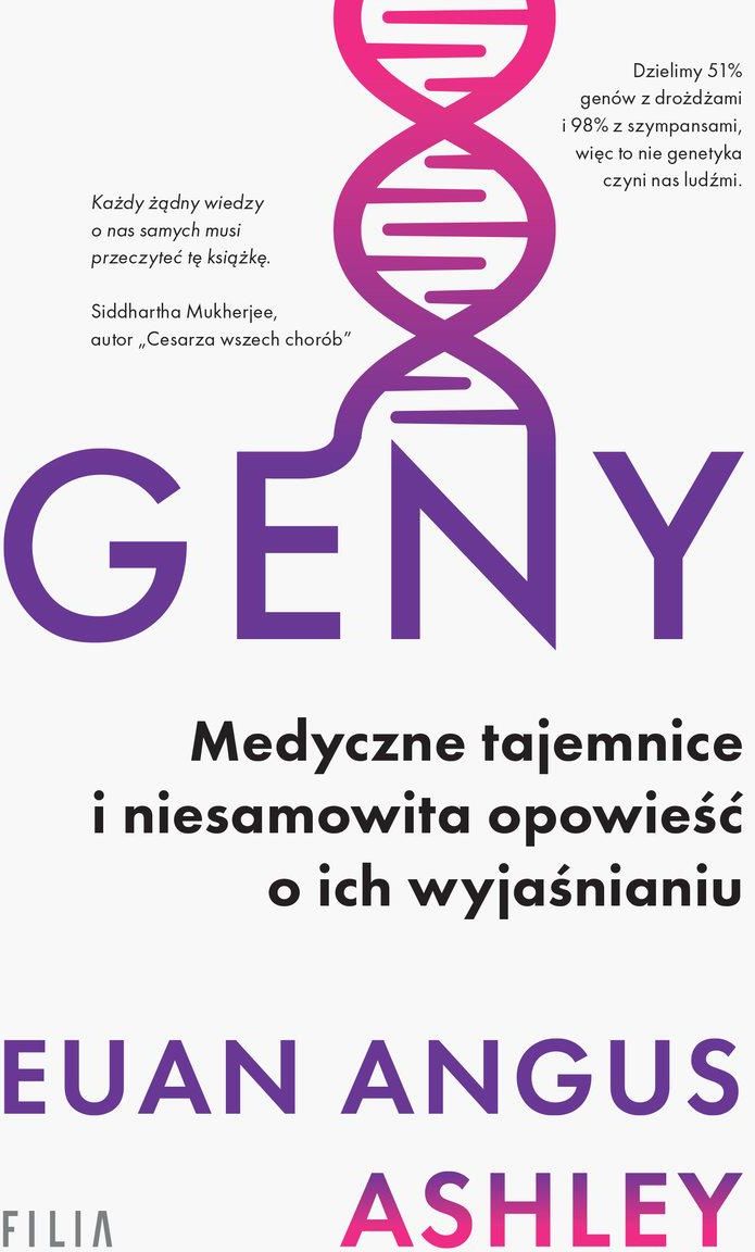 Dzielimy 51% genów z drożdżami i 98% z szympansami, więc to nie genetyka czyni nas ludźmi. PO RAZ PIERWSZY W NASZYM ZASIĘGU JEST ZDOLNOŚĆ ZROZUMIENIA, CO TAK NAPRAWDĘ OZNACZA „BYCIE CZŁOWIEKIEM“. Dr Euan Ashley w fascynujący sposób opowiada o niezwykłej podróży odkrywania ludzkiego genomu, naszego „kodu życia”. Niczym śledczy pokazuje drogę od informacji genetycznej do praktyki lekarskiej, opowiadając historie pacjentów, których życie zmieniło się dzięki znajomości genomu. Dr Ashley z jasnością i prostotą, a jednocześnie z pasją, opisuje, w jaki sposób jego zespół jako pierwszy przeanalizował i zinterpretował kompletny genom ludzki. Opowiada jak zdiagnozowali i leczyli nowo narodzoną dziewczynkę, której serce zatrzymało się pierwszego dnia życia i jak u pewnego chłopca z guzami rosnącymi wewnątrz serca udało się skorelować podłoże tego problemu z brakującym fragmentem genomu. To właśnie ci pacjenci zainspirowali doktora Ashleya i jego zespół do sięgnięcia poza granice medycznych możliwości człowieka i do stworzenia wizji przyszłości, w której sekwencjonowanie genomu będzie dostępne dla wszystkich, a medycynę będziemy dostosowywać tak, aby leczyć konkretne choroby. Każdy żądny wiedzy o nas samych musi przeczytać tę książkę. Siddhartha Mukherjee – autor CESARZA WSZECH CHORÓB Niezwykle ważna książka, która pozwoli nam zgłębić zagadkę życia. – KIRKUS REVIEWS Geny. Odkryj tajemnice genetyki "Geny" to fascynująca książka, która w przystępny sposób wprowadza czytelników w świat genetyki. Autor, Euan Angus Ashley, dzieli się swoją wiedzą na temat genów, ich funkcji oraz wpływu na nasze życie. To lektura, która z pewnością zainspiruje zarówno pasjonatów nauk ścisłych, jak i osoby, które pragną zrozumieć, jak geny kształtują naszą rzeczywistość. Dla kogo jest ta książka? Studenci i uczniowie zainteresowani biologią i genetyką Osoby pragnące zgłębić tajniki nauk ścisłych Miłośnicy popularnonaukowej literatury Każdy, kto chce zrozumieć, jak geny wpływają na nasze życie Co zyskasz dzięki tej publikacji? Wiedza o genach: Zdobądź podstawowe informacje na temat genów i ich roli w organizmach żywych. Przystępne wyjaśnienia: Zrozum skomplikowane zagadnienia genetyki dzięki jasnym i zrozumiałym opisom. Inspiracja do dalszego zgłębiania: Odkryj, jak genetyka wpływa na różnorodność życia i jakie ma znaczenie w medycynie. Praktyczne zastosowania: Dowiedz się, jak wiedza o genach może być wykorzystana w codziennym życiu i w różnych dziedzinach nauki. Kluczowe tematy i obszary Podstawy genetyki Rola genów w organizmach żywych Genetyka a medycyna Współczesne badania genetyczne Znaczenie genów w ewolucji i różnorodności biologicznej O Autorze Euan Angus Ashley – uznany ekspert w dziedzinie genetyki, który łączy wiedzę naukową z pasją do popularyzacji nauki. Jego prace przyczyniają się do zrozumienia złożoności genów i ich wpływu na zdrowie oraz życie codzienne. O Wydawcy Filia – wydawnictwo, które specjalizuje się w publikacjach z zakresu nauk ścisłych, oferując czytelnikom dostęp do najnowszych odkryć i wiedzy w przystępnej formie. Producent/osoba odpowiedzialna za bezpieczeństwo produktuGrupa Wydawnicza Filia Sp. z o.o.Kleeberga 261-615 Poznańbiuro@wydawnictwofilia.pl512 027 368
