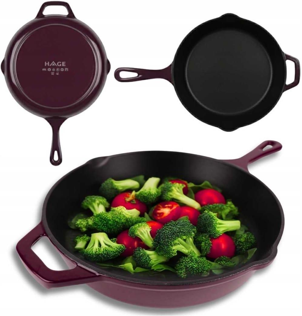 EMALIOWANA PATELNIA ŻELIWNA 26cm HAGE EGGPLANT DR10-eggplant Odkryj trwałą patelnię żeliwną 26 cm w eleganckim bakłażanowymkolorze. Żeliwo doskonale rozprowadza i utrzymuje ciepło, gwarantując perfekcyjne rezultaty smażenia, duszenia i zapiekania. Używaj jej na wszystkich kuchenkach, w tym …
