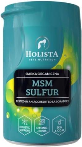 Holista MSM Sulfur - siarka dla psa i kota 250g MSM dla psa i kota marki Holista (metylosulfonylometan) to organiczny związek siarki biogennej, która uczestniczy w wielu ważnych procesach zachodzących w organizmie. Siarka bierze udział w syntezie aminokwasów i enzymów, występuje jako składnik kolagenu (co wpływa m.in. na kondycję aparatu ruchu) oraz keratyny, która utrzymuje zdrową sierść i skórę. Siarka organiczna, inaczej znana jest pod określeniem MSM lub metylosiarczan Występuje pod postacią czystego, naturalnego i stabilnego białego proszku krystalicznego, lekko gorzkiego w smaku, który pozbawiony jest nieprzyjemnego zapachu. Co ważne jest ona bezwonna, a także nie powoduje przykrego zapachu ciała, czy też nie powoduje powstawania gazów. W skrócie – posiada wszelkie właściwości siarki z punktu widzenia korzystnego wpływu na organizm, jednocześnie nie ma wad siarki jako pierwiastka. MSM dla psa i kota Holista dostarcza organizmowi Twojego zwierzęcia siarkę, która wykorzystywana jest do wspomagania organizmu w radzeniu sobie z wieloma schorzeniami. Wśród nich można wymienić zapalenie kości oraz stawów, alergie czy zaburzenia trawienia. Siarka jest suplementem szczególnie polecanym zwierzętom, które cierpią z powodu problemów kostnych, gdyż jest ona substancją niezbędną do syntezy chrząstki. Z tego też powodu jest szeroko wykorzystywana w leczeniu zapalenia stawów. Skład: 100% MSM (metylosulfonylometan) Sposób podania: wymieszać z pokarmem. Dawkowanie: Koty: 0,5 miarki Psy: 1 miarka / 10 kg m.c. Waga orientacyjna produktu w miarce ok. 1 g Przechowywanie: po otwarciu przechowywać w temperaturze pokojowej. Przyczyn chorób stawów u zwierzęcia może być wiele, a objawy tych schorzeń są do siebie podobne. Warto zwracać uwagę na zachowanie zwierzaka. Często zdarza się, że pupil zaczyna unikać spacerów, chodzenia, biegania lub skakania. Wyraźnie też unika nadmiernego obciążania jednej z łap. Dodatkowo mogą pojawić się obrzęki okołostawowe i zauważalne problemy ze wstawaniem. Jeśli zauważysz takie zachowanie u swojego czworonoga – udaj się do lekarza weterynarii, by przeprowadzić dokładną diagnostykę. Chorobom stawów można starać się zapobiegać. Jednym ze sposobów zapobiegania chorobom stawów, a także ograniczania jest utrzymywanie właściwej wagi zwierzęcia. Bardzo ważne jest także zapewnienie zwierzakowi odpowiedniej dawki ruchu. Warto pamiętać, że nie tylko zbyt niska aktywność może sprzyjać otyłości i pojawianiu się zwyrodnień. Zbyt duże przeciążenia stawów przy nadmiernej ilości ruchu również nie są dobre dla kondycji zdrowotnej Twojego czworonoga. Nie bez znaczenia jest także rodzaj aktywności. Ten trzeba dopasować do zwierzęcia, zarówno jego potrzeb, jak i możliwości. Odpowiednio zbilansowana dieta połączona z właściwą dawką ruchu i świadomym właścicielem pozwolą Twojemu zwierzakowi dłużej żyć w dobrym zdrowiu i kondycji. Suplementacja MSM dla psa i kota Holista wzbogacona i przeciwutleniacze może znacznie poprawić kondycję zwierzęcia, oraz długość i jakość jego życia. Naturalnymi źródłami MSM są mięso, ryby, jaja drób oraz mleko, warzywa oraz rośliny strączkowe i owoce w dalszej kolejności. W związku z tym, że MSM jest wytrącane w trakcie przechowywania i przygotowywania żywności można mieć realne obawy, że pokarmy mogą nie dostarczać odpowiednio wysokiej dawki siarki zwierzętom. Co istotne, ilość MSM w organizmach żywych zmniejsza się wraz z wiekiem. Z tego też powodu zwierzęcy seniorzy wymagają dodatkowej suplementacji, np. za pomocą MSM dla psa i kota Holista. Warto więc wspomnieć jakie korzyści dla organizmu zwierzęcia niesie za sobą suplementacja MSM: - wykazuje działanie przeciwbólowe i przeciwzapalne, co jest wykorzystywane w leczeniu chorób zwyrodnieniowych stawów, - wycisza reakcje alergiczne - wzmacnia sierść, skórę i pazury, - zwiększając aktywność kortyzolu, zmniejsza stan zapalny, - jest doskonałym przeciwutleniaczem i zmniejsza działanie wolnych rodników, - ma silne działanie odtruwające, - wspomaga organizm w wydalaniu toksyn, - poprawia przyswajalność witamin i składników odżywczych, - usprawnia elastyczność stawów, - reguluje gospodarkę hormonalną. Choć jak widać MSM przynosi dla organizmu wiele różnorodnych korzyści, to jednak substancja ta wykorzystywana jest głównie ze względu na działanie na układ kostny. Dlatego też suplementacja MSM dla psa i kota Holista jest wskazana głównie dla tych zwierząt, które zmagają się z chorobami zwyrodnieniowymi stawów, co prowadzi do degradacji chrząstki. Według badań siarka zakłóca proces degradacyjny i chroni chrząstkę stawową. Ponadto MSM zmniejsza skutki reumatoidalnego zapalenia stawów, czyli deformacje i obrzęki, a co więcej może chronić przed dalszym rozwojem zapalenia. Ważnym aspektem jet to, że MSM może być stosowany przez długi czas. Wybierając Holista masz pewność, że wszystkie produkty, które podajesz swoim zwierzętom, są czyste, bezpieczne i spełniają najbardziej rygorystyczne międzynarodowe wymagania.