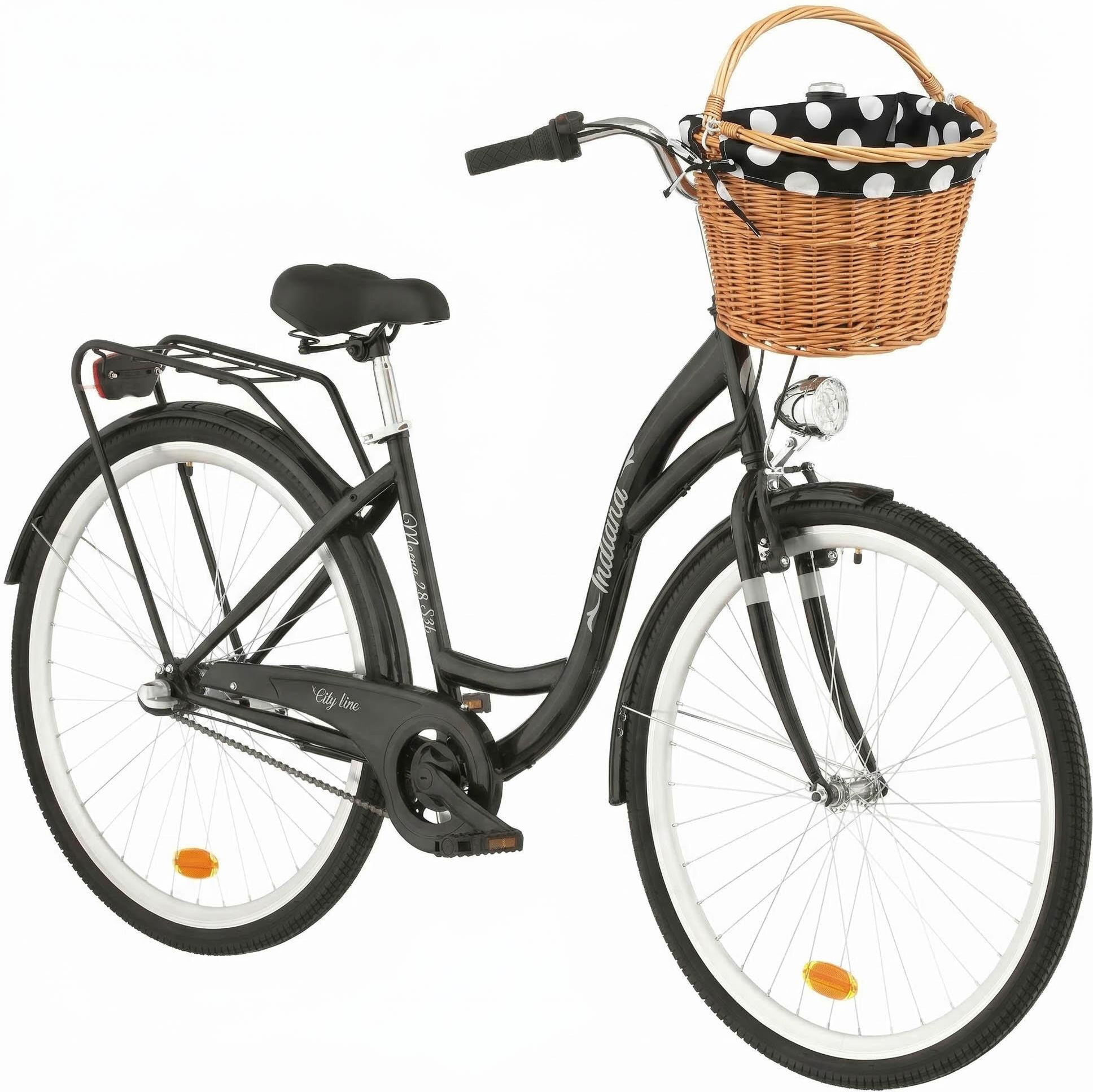 Aktywny wypoczynek Zapomnij o korkach i problemach z parkowaniem samochodu! Rower miejski INDIANA Moena S3B to idealne rozwiązanie dla tych, którzy chcą poruszać się po mieście szybko, wygodnie i w stylu. Dzięki temu rowerowi z łatwością przemieścisz się po ulicach miasta, dotrzesz do pracy czy szkoły, zrobisz zakupy lub po prostu spędzisz czas na powietrzu. Jego unikalny design sprawi, że zwrócisz uwagę przechodniów i pozwoli poczuć się wyjątkowo w tłumie. Wytrzymała rama Rama typu holenderskiego INDIANA Moena S3B wykonana jest ze stali o rozmiarze 17". Dzięki temu jest ona bardzo trwała i wytrzymała na trudy miejskiego użytkowania. Dodatkowo, jej konstrukcja zapewnia stabilność i komfort podczas jazdy. Pamiętaj, żeby dopasować rozmiar ramy do swojego wzrostu oraz długości wewnętrznej nogi. Nie zawsze dopasowanie ramy tylko do wzrostu będzie wystarczające ze względu na to, że mamy różną długość nóg. Jeśli chcemy czuć się na swoim rowerze komfortowo, przede wszystkim musimy zacząć od dopasowania długości ramy. Dzięki temu rower będzie się dużo łatwiej prowadzić! Bezpieczeństwo i kontrola Hamulec przedni stalowy V-Brake marki SHIMANO zapewnia doskonałą kontrolę nad rowerem podczas hamowania. Hamulec ten charakteryzuje się łatwością użycia oraz wysoką skutecznością. Hamulec tylny to piasta samohamowna, która pozwala na zatrzymanie się bez konieczności użycia hamulca. Zmieniaj biegi! Przerzutki tylne marki SHIMANO NEXUS o 3 biegach to gwarancja płynnej jazdy i łatwej zmiany biegów. Dzięki temu bez problemu dostosujesz swoją prędkość do warunków panujących na drodze. Komfortowa kierownica Kierownica miejska o wąskim kształcie marki INDIANA na stalowo-aluminiowym wsporniku to doskonały wybór dla tych, którzy szukają wygody i stylu. Kierownica ta jest bardzo wygodna w użyciu i doskonale dopasowuje się do dłoni użytkownika. Dodatkowo, profilowane uchwyty o antypoślizgowej strukturze zwiększą przyczepność dłoni. Doskonała przyczepność w każdą pogodę! Rower miejski INDIANA Moena S3B posiada koła o rozmiarze 28 cali, a ich obręcze wykonane są z aluminium, co gwarantuje trwałość i wytrzymałość konstrukcji. Obręcze są stożkowe, co zwiększa ich sztywność i stabilność. Dzięki temu rower utrzymuje kierunek jazdy, a jazda jest bardziej komfortowa. Opony zastosowane w rowerze INDIANA Moena S3B są idealnie dopasowane do miejskiej jazdy. Posiadają one bieżnik o średniej głębokości, co zapewnia dobrą przyczepność na asfalcie i lekkim terenie. Pamiętaj, aby regularnie sprawdzać ciśnienie powietrza! Wraz z upływem czasu spada ciśnienie w kołach – to naturalne zjawisko spowodowane porowatością dętki, które może powodować większy wysiłek przy pedałowaniu oraz szybsze zużycie i większe ryzyko przebicia opony. Zalecaną przez producenta wartość znajdziesz na bocznej części opony. Oświetlenie na każdą porę Rower INDIANA Moena S3B wyposażony jest w bateryjne oświetlenie LED, co zapewnia dobrą widoczność i bezpieczeństwo podczas jazdy w ciemności. Dzięki zasilaniu z baterii, oświetlenie jest niezależne od prędkości jazdy i działa nawet przy niskich prędkościach. Zastosowane diody LED są energooszczędne, co przedłuża żywotność baterii i zapewnia dłuższy czas jazdy z jednym ładowaniem. Zabierz ze sobą bagaż Rower INDIANA Moena S3B wyposażony jest w solidny bagażnik, który umożliwia przewożenie różnego rodzaju bagaży, takich jak torby, plecaki, czy kosze rowerowe. Bagażnik został zamontowany nad tylnym kołem, a więc nie przeszkadza podczas podróży. Jest to bardzo przydatne rozwiązanie w codziennym użytkowaniu roweru miejskiego, na przykład do przewożenia zakupów. Wysoki poziom komfortu podczas jazdy Siodełko rowerowe INDIANA Moena S3B zostało zaprojektowane z myślą o maksymalnym komforcie użytkownika. Siodełko typu Comfort na sprężynach na sztycy prostej stalowej, zapewnia wygodną pozycję siedzącą i redukuje wibracje podczas jazdy. Dzięki temu, jazda na rowerze INDIANA Moena S3B jest wygodna i przyjemna, nawet podczas długich tras. Dłuższa żywotność łańcucha Rower INDIANA Moena S3B wyposażony jest w osłonę łańcucha, co pozwala na ochronę przed brudem i zapewnia dłuższą żywotność łańcucha. Osłona łańcucha zwiększa też bezpieczeństwo użytkowania roweru, ponieważ chroni przed przypadkowym dotknięciem lub wplątaniem ubrania w napęd. Zabezpieczenie przed zachlapaniem ciała i odzieży Rower INDIANA Moena S3B wyposażony jest w szerokie błotniki, które chronią przed zachlapaniem i brudem podczas jazdy w deszczowe dni. Błotniki zapobiegają też przenoszeniu brudu z koła na ramę i ubranie użytkownika, co ułatwia utrzymanie czystości roweru i poprawia komfort jazdy. Szerokie błotniki INDIANA Moena S3B są wykonane z wytrzymałego materiału, co zapewnia im długą żywotność i niezawodność. Wyposażenie Do roweru dołączono dzwonek, odblaski, stopkę, instrukcję obsługi i montażu oraz kartę gwarancyjną. Zadbaj o swoją wygodę W trosce o Twój komfort chcemy świadczyć usługi na jak najwyższym poziomie, dlatego oferujemy dodatkowe pakiety usług, w których m.in....