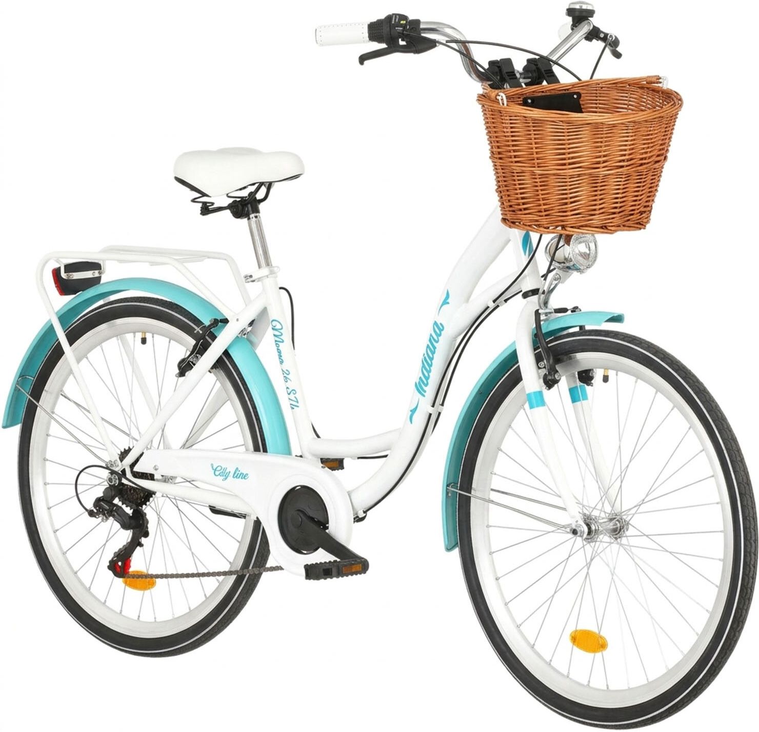 Aktywny wypoczynek Zapomnij o korkach i problemach z parkowaniem samochodu! Rower miejski INDIANA Moena S7B to idealne rozwiązanie dla tych, którzy chcą poruszać się po mieście szybko, wygodnie i w stylu. Dzięki temu rowerowi z łatwością przemieścisz się po ulicach miasta, dotrzesz do pracy czy szkoły, zrobisz zakupy lub po prostu spędzisz czas na powietrzu. Jego unikalny design sprawi, że zwrócisz uwagę przechodniów i pozwoli poczuć się wyjątkowo w tłumie. Wytrzymała rama Rama typu holenderskiego INDIANA Moena S7B wykonana jest ze stali o rozmiarze 17". Dzięki temu jest ona bardzo trwała i wytrzymała na trudy miejskiego użytkowania. Dodatkowo, jej konstrukcja zapewnia stabilność i komfort podczas jazdy. Pamiętaj, żeby dopasować rozmiar ramy do swojego wzrostu oraz długości wewnętrznej nogi. Nie zawsze dopasowanie ramy tylko do wzrostu będzie wystarczające ze względu na to, że mamy różną długość nóg. Jeśli chcemy czuć się na swoim rowerze komfortowo, przede wszystkim musimy zacząć od dopasowania długości ramy. Dzięki temu rower będzie się dużo łatwiej prowadzić! Bezpieczeństwo i kontrola Hamulec przedni i tylny aluminiowy V-Brake marki INDIANA zapewnia doskonałą kontrolę nad rowerem podczas hamowania. Hamulec ten charakteryzuje się łatwością użycia oraz wysoką skutecznością. Zmieniaj biegi! Przerzutki tylne marki SHIMANO o 7 biegach to gwarancja płynnej jazdy i łatwej zmiany biegów. Dzięki temu bez problemu dostosujesz swoją prędkość do warunków panujących na drodze. Komfortowa kierownica Kierownica miejska o wąskim kształcie marki INDIANA na stalowo-aluminiowym wsporniku to doskonały wybór dla tych, którzy szukają wygody i stylu. Kierownica ta jest bardzo wygodna w użyciu i doskonale dopasowuje się do dłoni użytkownika. Dodatkowo, profilowane uchwyty o antypoślizgowej strukturze zwiększą przyczepność dłoni. Doskonała przyczepność w każdą pogodę! Rower miejski INDIANA Moena S7B posiada koła o rozmiarze 26 cali, a ich obręcze wykonane są z aluminium, co gwarantuje trwałość i wytrzymałość konstrukcji. Obręcze są stożkowe, co zwiększa ich sztywność i stabilność. Dzięki temu rower utrzymuje kierunek jazdy, a jazda jest bardziej komfortowa. Opony zastosowane w rowerze INDIANA Moena S7B są idealnie dopasowane do miejskiej jazdy. Posiadają one bieżnik o średniej głębokości, co zapewnia dobrą przyczepność na asfalcie i lekkim terenie. Pamiętaj, aby regularnie sprawdzać ciśnienie powietrza! Wraz z upływem czasu spada ciśnienie w kołach – to naturalne zjawisko spowodowane porowatością dętki, które może powodować większy wysiłek przy pedałowaniu oraz szybsze zużycie i większe ryzyko przebicia opony. Zalecaną przez producenta wartość znajdziesz na bocznej części opony. Oświetlenie na każdą porę Rower INDIANA Moena S7B wyposażony jest w bateryjne oświetlenie LED z tyłu i z przodu, co zapewnia dobrą widoczność i bezpieczeństwo podczas jazdy w ciemności. Dzięki zasilaniu z baterii, oświetlenie jest niezależne od prędkości jazdy i działa nawet przy niskich prędkościach. Zastosowane diody LED są energooszczędne, co przedłuża żywotność baterii i zapewnia dłuższy czas jazdy z jednym ładowaniem. Zabierz ze sobą bagaż Rower INDIANA Moena S7B wyposażony jest w solidny bagażnik, który umożliwia przewożenie różnego rodzaju bagaży, takich jak torby, plecaki, czy kosze rowerowe. Bagażnik został zamontowany nad tylnym kołem, a więc nie przeszkadza podczas podróży. Jest to bardzo przydatne rozwiązanie w codziennym użytkowaniu roweru miejskiego, na przykład do przewożenia zakupów. Wysoki poziom komfortu podczas jazdy Siodełko rowerowe INDIANA Moena S7B zostało zaprojektowane z myślą o maksymalnym komforcie użytkownika. Siodełko typu Comfort na sprężynach na sztycy prostej stalowej, zapewnia wygodną pozycję siedzącą i redukuje wibracje podczas jazdy. Dzięki temu, jazda na rowerze INDIANA Moena S7B jest wygodna i przyjemna, nawet podczas długich tras. Dłuższa żywotność łańcucha Rower INDIANA Moena S7B wyposażony jest w osłonę łańcucha, co pozwala na ochronę przed brudem i zapewnia dłuższą żywotność łańcucha. Osłona łańcucha zwiększa też bezpieczeństwo użytkowania roweru, ponieważ chroni przed przypadkowym dotknięciem lub wplątaniem ubrania w napęd. Zabezpieczenie przed zachlapaniem ciała i odzieży Rower INDIANA Moena S7B wyposażony jest w szerokie błotniki, które chronią przed zachlapaniem i brudem podczas jazdy w deszczowe dni. Błotniki zapobiegają też przenoszeniu brudu z koła na ramę i ubranie użytkownika, co ułatwia utrzymanie czystości roweru i poprawia komfort jazdy. Szerokie błotniki INDIANA Moena S7B są wykonane z wytrzymałego materiału, co zapewnia im długą żywotność i niezawodność. Wyposażenie Do roweru dołączono dzwonek, odblaski, stopkę, instrukcję obsługi i montażu oraz kartę gwarancyjną. Zadbaj o swoją wygodę W trosce o Twój komfort chcemy świadczyć usługi na jak najwyższym poziomie, dlatego oferujemy dodatkowe pakiety usług, w których m.in. zakupiony rower wniesiemy, rozpakujemy i zmontujemy za Ciebie. Wszystko po to, b...