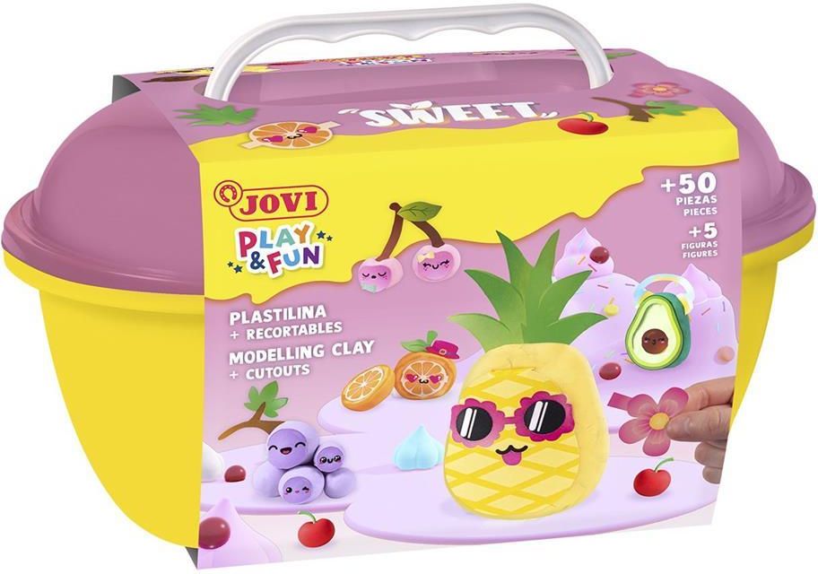 NOWOŚĆ! Jovi kufer na pastylinę, ten zestaw zawiera: 24 x 15 gramowych kolorowych batonów, zawiera 3 szablony z wycięciami do robienia różnych owoców, 3 narzędzia tnące i 1 instrukcja obsługi krok po kroku. Skrzynia jest idealna, dzięki czemu mogą przechowywać i organizować swoje zabawki. Idealny dla dzieci, aby zabrać go wszędzie! Odkryj nową skrzynię Play&Fun i kształtuj unikalne postacie z plasteliny. Piłki, dodaj akcesoria do przycinania, które są zawarte w zestawie. Formowane ciasto o dużej plastyczności Plastelina, która nie wysycha, możesz grać tyle razy, ile chcesz! Pasta do modelowania na bazie roślin, wolna od głównych alergenów, nietoksyczna i bezglutenowa. Wyprodukowano w Hiszpanii. Idealnie nadaje się na prezent urodzinowy, prezent świąteczny lub upominek, który sprawi, że się uśmiechną, jest zabawką edukacyjną i zabawną. Zabawa gwarantowana przez całe życie! Idealny dla chłopców i dziewcząt od 3 lat. Jovi Ufaj, że rysowanie, malowanie i modelowanie może być najlepszą grą dla dzieci, uczą się rozwijać umiejętności, takie jak koncentracja, kreatywność i wolność słowa, będą mogli tworzyć własne figurki i odkrywać różne techniki podczas zabawy, idealne do eksperymentowania i zabawy!