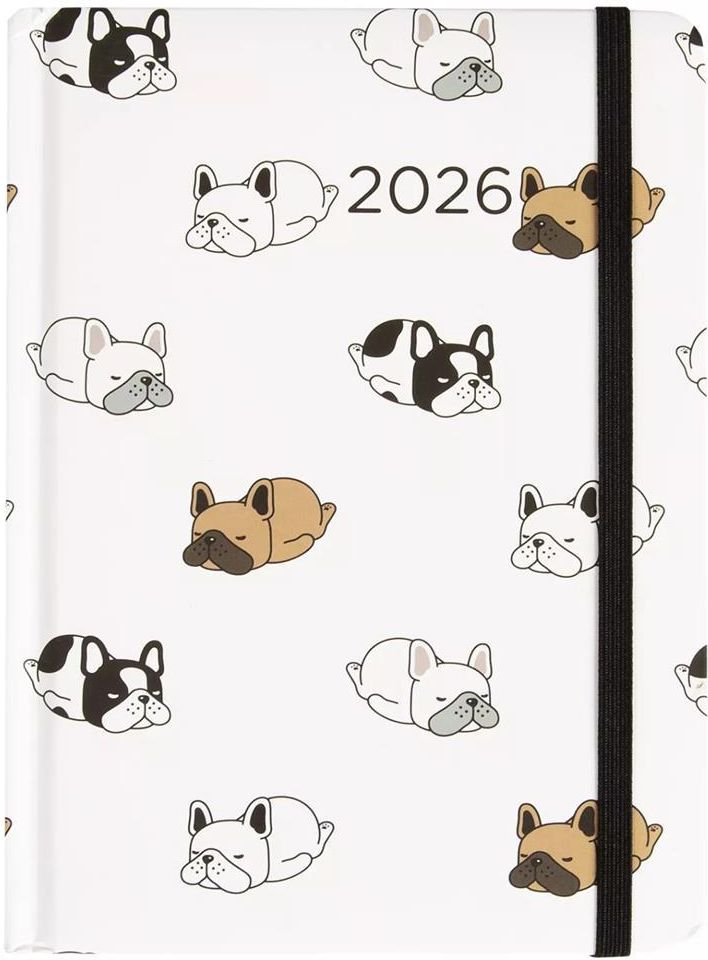 Kalendarz 2026 B6 dzienny, psy Dzienny kalendarz w formacie B6 z kolorowymi motywami – planuj tak jak lubisz!W kalendarzu znajdziesz kalendarz dzienny na cały rok 2026 z dużą ilością miejsca na notatki na każdy dzień – cała strona jest zarezerwowana na każdy dzień. W kalendarzu znajdziesz również kalendarz planowania miesięcznego 2026, kalendarium dodatkowe na rok 2027, a na końcu kalendarza miejsce zarezerwowane na wszystkie notatki i adresy.Szczegóły:• zamykany na gumkę,• wewnątrz: wstążka, plan roku 2026, notatnik, adresownik, linijka, kalendarium dodatkowe na 2026-2027,• gramatura papieru: 120 g/m2,• oprawa: twarda, gąbkowana. Dzienny kalendarz w formacie B6 z kolorowymi motywami – planuj tak jak lubisz!W kalendarzu znajdziesz kalendarz dzienny na cały rok 2026 z dużą ilością miejsca na notatki na każdy dzień – cała strona jest zarezerwowana na każdy dzień. W kalendarzu znajdziesz również kalendarz planowania miesięcznego 2026, kalendarium dodatkowe na rok 2027, a na końcu kalendarza miejsce zarezerwowane na wszystkie notatki i adresy.Szczegóły:• zamykany na gumkę,• wewnątrz: wstążka, plan roku 2026, notatnik, adresownik, linijka, kalendarium dodatkowe na 2026-2027,• gramatura papieru: 120 g/m2,• oprawa: twarda, gąbkowana.