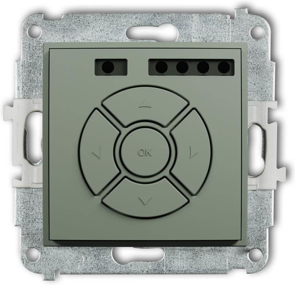Elektroniczny sterownik roletowy (sterowanie lokalne) w kolorze szałwiowym z serii ICON, marki Karlik. . Uwaga: Jeden sterownik obsługuje lokalnie tylko jedną roletę. Urządzenie przeznaczone jest do sterowania rolet wyposażonych w silniki elektryczne o mocy max do 150W, zasilanych z sieci 230V 50Hz. Do kompletu wymagana ramka. Można stosować do systemów ramkowych wielokrotnych. Typy sterowników oraz realizowane funkcje Dokładny opis funkcjonowania elektronicznych sterowników roletowych jest dostępny w instrukcji dostępnej do pobrania poniżej.