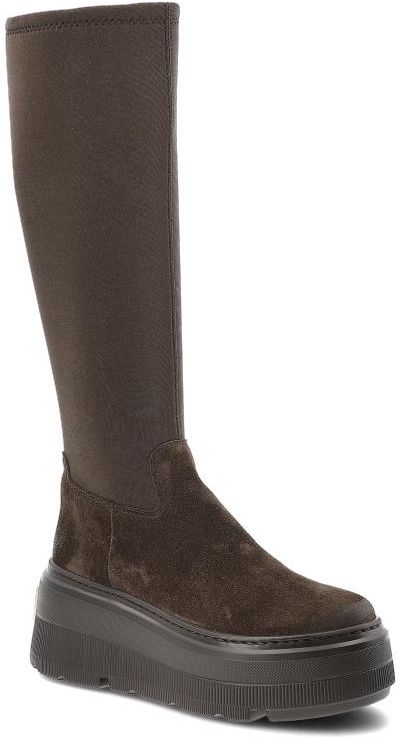 Brązowe Kozaki Chebello Buty Damskie Na Solidnej Podeszwie