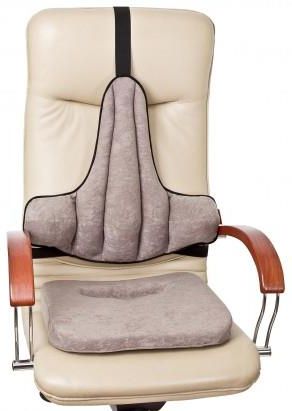 Nakładka na krzesło lub fotel w kolorze beżowym Przeznaczenie: korekta sylwetki w pozycji siedzącej na krześle lub foteluZakres wagowy: bez ograniczeń,Zakres wzrostowy: bez ograniczeń,Dla: kobiet, mężczyzn. Kolor: beżowyWprowadzenie: Większość krzeseł nie może być dopasowana do indywidualnego użytkownika. Jedynie niewielka ilość drogich foteli jest prawidłowo (anatomicznie) ukształtowana i umożliwia dodatkowo regulację dla przyjęcia prawidłowej pozycji siedzącemu. Niestety, zarówno twarde krzesło, jak i miękki fotel, fatalnie wpływają na kręgosłup osoby siedzącej – w pozycji wyprostowanej na trzeci krążek międzykręgowy napiera siła odśrodkowa 150 kg! Jest to potężne wyzwanie dla mięśni pleców, jednak możliwe do pokonania, ale obciążenie to może się nawet zwiększać do 250-280 kg, a to już za dużo. Gdy osoba siedząca pochyla się nad biurkiem zasypanym dokumentami, a teraz najczęściej nad klawiaturą komputera, trudno jest jej utrzymać głowę odchyloną do tyłu. Przygarbiona sylwetka i rozluźnione mięśnie pleców, które w takiej pozycji przestają neutralizować nacisk, doprowadzają do urazów krążków międzykręgowych i zmian zwyrodnieniowych kręgosłupa.Cel stosowania zestawu: Zastosowanie nakładki systemu „KULIK-SYSTEM” umożliwia kształtowanie prawidłowej pozycji siedzącego na każdym krześle. Zastosowanie zestawu stwarza siedzącemu sytuację komfortową. Siedzący intuicyjnie utrzymuje właściwą postawę, bez zaprzątania tym swojej uwagi. Jego kręgosłup będzie obciążany prawidłowo (anatomicznie), a wielogodzinna nieraz pozycja siedząca nie wywoła mikrourazów kręgów, naprężeń i zmęczenia mięśni kręgosłupa. Warunkiem jest prawidłowe rozmieszczenie elementów na fotelu, powodujących nieświadome cofanie przez siedzącego guzów kulszowych w kierunku oparcia fotela i elastyczną pracę kręgosłupa na odcinku łuku lędźwiowego.Sposób użytkowania: Górny element nakładki mocujemy obejmami na oparciu krzesła, pamiętając przy tym aby część lędźwiowa znajdowała się na wysokości lędźwi użytkownika. Natomiast dolny element nakładki mocujemy możliwie najbliżej w kierunku oparcia krzesła. Elementy nakładki wykonane są z najlepszych materiałów, z wypełnieniem paroprzepuszczalnym umożliwiającym oddychanie ciała. Opis Coraz więcej pracujemy w pozycji siedzącej, która jest najgorsza dla naszego kręgosłupa. Do tego zwykle nie siedzimy przed komputerem albo laptopem właściwie, co z czasem zaowocuje bólami i zwyrodnieniami. Trzeba działać zawczasu, profilaktycznie, korygować swoją postawę. Technologia i ergonomia przychodzą nam z pomocą. Dzięki nim możemy kupić przedmiot, który ulży naszemu kręgosłupowi. Jest nim właśnie prezentowana nakładka na krzesło firmy Kulik-System.Nakładka wyprodukowana została w kolorze beżowym. Mocuje się ją do oparcia krzesła lub fotela za pomocą łatwego w użyciu systemu pasów na zatrzaski z tworzywa sztucznego. Koniecznie trzeba pamiętać, aby nakładka znajdowała się na wysokości kręgosłupa lędźwiowego. Wtedy będzie najlepiej spełniać swoją funkcję, którą jest korekta sylwetki w pozycji siedzącej. Dolna część powinna być jak najbliżej oparcia krzesła lub fotela. Nakładka nie ma ograniczeń wagowych, wzrostowych, wiekowych oraz płciowych. Dzięki zastosowaniu tego przedmiotu będzie nam się wygodniej siedzieć, a przede wszystkim oddalimy niebezpieczeństwo problemów z kręgosłupem, w tym zwyrodnień stawów, bólów mięśni i stawów. Dzięki nakładce szybko i intuicyjnie będziesz przybierać właściwą pozycję podczas siedzenia.