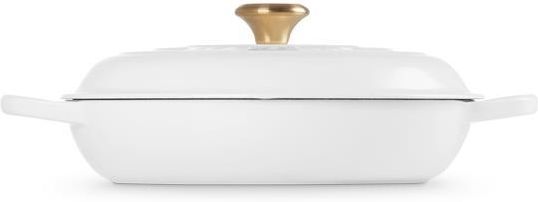 Garnek Profesjonalny Le Creuset Gourmet 30cm Biały Marka Le Creuset Witamy w naszym świecie inspirujących trendów i kolorów Bez względu na to, czy na co dzień najbardziej zależy Ci na szybkim przygotowaniu prostych posiłków, czy jesteś profesjonalnym szefem kuchni, zawsze znajdziesz tu swój dom. Dołączenie do naszej rodziny jeszcze bardziej przybliży Cię do tradycji Le Creuset - przekształcając każdy posiłek w wspomnienie, które będziesz pielęgnować. W 1925 roku dwóch belgijskich przemysłowców spotkało się na targach w Brukseli; jeden z nich był pecjalistą w dziedzinie emaliowania, drugi w odlewnictwie. Wspólnie „złamali szyfr” do emaliowanego żeliwa i wprowadzili kolor do kuchni. Założyciele Le Creuset wspólnie zapoczątkowali nową erę naczyń kuchennych. Wspólnie określili podstawowy proces produkcji emaliowanej żeliwnej brytfanny, który stosujemy po dziś dzień. Po utworzeniu roboczego prototypu w 1925 roku narodziła się firma Le Creuset. Para utworzyła odlewnię w wiosce Fresnoy-le-Grand, około dwie godziny drogi na północ od Paryża. Garnek Gourmet Profesjonalny Nasze produkty żeliwne wykonywane w oryginalnej odlewni we Francji to prawdziwe legendy w każdej kuchni. Ta płytka brytfanna nie jest tu wyjątkiem. Duże, płaskie dno oraz niskie boki czynią ją idealną do obsmażania mięs oraz warzyw, przygotowywania zapiekanek, dań typu stir fry oraz pieczenia. Poprawia karmelizację, nadając potrawom jeszcze lepszy smak. Cechy garnka: Zawsze na chłodno: nasze gałki są odporne na wysokie temperatury (do 260°C) i zostały zaprojektowane tak, by zapewnić pewny chwyt przy podnoszeniu pokrywki, nawet w rękawicach. Szybkie czyszczenie: emaliowane wnętrze w jasnym kolorze znacznie ułatwia mycie. Uchwyt jak marzenie: nasze duże uchwyty umożliwiają bezproblemowe przestawianie naczynia z kuchenki do piekarnika lub na stół, nawet w rękawicach. Naprawdę uniwersalne naczynie: używaj go w piekarniku, na kuchence, płycie indukcyjnej, a nawet pod grillem. Świetny smak jedzenia: żeliwo zatrzymuje ciepło, by potrawy gotowały i smażyły się równomiernie. Twoje pyszne potrawy dłużej pozostaną też ciepłe na stole. Zatrzymują wilgoć: nasze dopasowane pokrywki pomagają zachować wilgoć i uwydatnić smak, by jedzenie było idealnie ugotowane. Łatwe chwytanie: stylowe i wygodne uchwyty umożliwiają bezpieczne podnoszenie. Wszystkie kolory tęczy: nasza gama jest dostępna w wielu barwach, które pięknie ożywią Twoją kuchnię. Nie za gorąco: gotuj na stałym, małym lub średnim ogniu, aby zadbać o żeliwo i uzyskać pyszne efekty. Najlepsze w swojej klasie: nasze produkty są wytwarzane z najszlachetniejszych materiałów w zakładach na całym świecie, dzięki czemu cechuje je jakość, jakiej oczekujesz od Le Creuset. Materiał: Emaliowane Żeliwo Wyprodukowano w: Francja Gwarancja: Dożywotnia Gwarancja