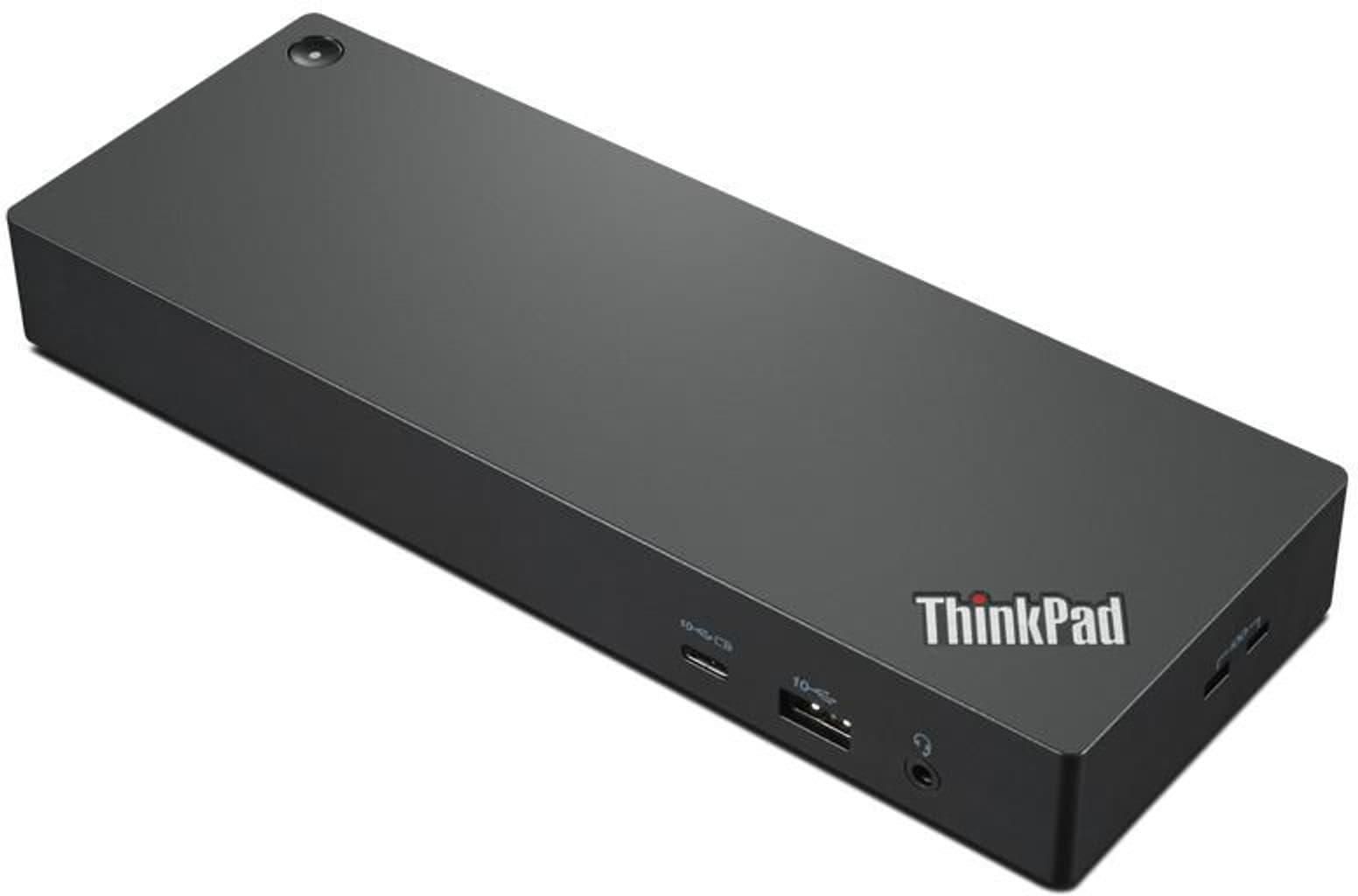 Lenovo ThinkPad Universal Thunderbolt 4. Technologia łączności: Przewodowa, Interfejs hosta: Thunderbolt 4, Wtyk słuchawek: 3,5 mm. Kolor produktu: Czarny, Certyfikaty: cULus, FCC, ICES, NOM. Rodzaj zasilania: DC, Prąd wejściowy: 6.75 A, Zasilanie: 135 W. Szerokość produktu: 220 mm, Głębokość produktu: 80 mm, Wysokość produktu: 30 mm. Szerokość opakowania: 270 mm, Głębokość opakowania: 195 mm, Wysokość opakowania: 85 mm