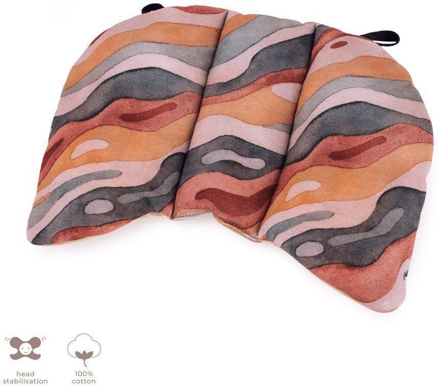 Poduszka antywstrząsowa - Rainbow Mountain Poduszka antywstrząsowa Makaszka zapewniająca wyjątkowy komfort podczas podróży w wózku, redukująca wstrząsy i zapewniająca spokojny sen dla Twojego maluszka. Nowy kształt i większy rozmiar poduszki umożliwiają jeszcze lepsze dopasowanie do różnych modeli wózków, co sprawia, że jest to idealne rozwiązanie dla każdego rodzica.Środkowa część poduszki została zaprojektowana płaska, a boki lekko wypełnione i mięciutkie, co sprzyja prawidłowemu kształtowaniu się kręgosłupa dziecka w okresie jego rozwoju.Poduszka doskonale współpracuje ze spacerówkami, a dzięki pętelkom w górnej części możesz łatwo zamontować ją do wkładki do wózka Makaszka, zapewniając pełną wygodę podczas spacerów i podróży z dzieckiem. Poduszka antywstrząsowa jest doskonałą alternatywą dla popularnej poduszki Motylek. Zapewniając wyjątkowy komfort i bezpieczeństwo podczas podróży, nasza nowa poduszka antywstrząsowa jest idealnym rozwiązaniem dla Twojego maluszka.