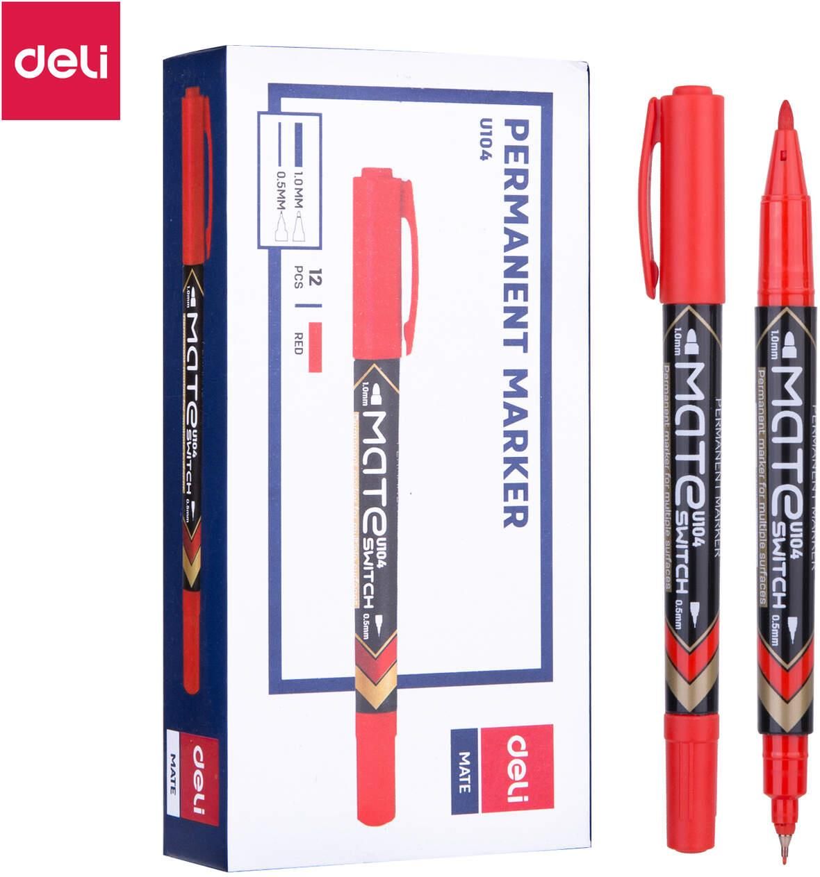 Marker Permanetny Dwustronny Deli 1,0Mm & 0,5Mm Czerwony Rybnik
