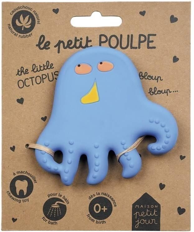 Zabawka - gryzak o niebieskiej ośmiorniczki, wykonana z naturalnego kauczuku. To nie tylko urocza, ale również ekologiczna opcja, która zapewnia dzieciom bezpieczne ukojenie dziąseł podczas rosnących ząbków. Zabawka wykonana z naturalnego kauczuku jest przyjazna dla środowiska i bezpieczna dla dzieci. Kauczuk naturalny jest materiałem biodegradowalnym i nie zawiera szkodliwych substancji chemicznych, co sprawia, że jest idealny dla delikatnej skóry dziecka. Miękka tekstura i zaokrąglone kształty sprawiają, że jest bezpieczna, zapobiegając możliwym urazom czy zranieniom. Jest łatwa w utrzymaniu w czystości. Można ją tylko przemyć pod bieżącą wodą i pozostawić do wyschnięcia. Brak otworów, dziurek zapobiega gromadzeniu się bakterii i grzybów. Zabawki z naturalnego kauczuku są zazwyczaj trwałe i wytrzymałe, co oznacza, że ​​mogą służyć dzieciom przez długi czas, zachowując swoje właściwości i walory zabawowe. To doskonały wybór dla dzieci, którzy cenią sobie ekologiczne i bezpieczne zabawki, które dodatkowo stymulują ich zmysły i wyobraźnię. Produkty marki Maison Petit Jour to doskonały prezent na każdą okazję :)