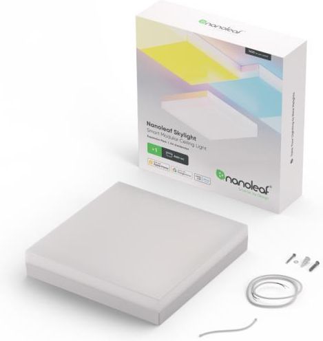 Nanoleaf Skylight Expansion Pack dodatkowy sufitowy panel świetlny 1sztuka Nanoleaf Skylight Expansion Pack – Inteligentne Panele Sufitowe Nanoleaf Skylight Expansion Pack to innowacyjne rozwiązanie dla osób pragnących stworzyć wyjątkowe, modułowe oświetlenie sufitowe. Dzięki technologii imitującej naturalne światło oraz szerokim możliwościom personalizacji, panele te są idealnym dodatkiem do nowoczesnych wnętrz. Czym Jest Nanoleaf Skylight Expansion Pack? Nanoleaf Skylight Expansion Pack to pojedynczy moduł świetlny przeznaczony do rozbudowy istniejących instalacji oświetlenia Nanoleaf Skylight. Dzięki modułowej konstrukcji i możliwości połączenia nawet 99 dodatkowych paneli, możesz w pełni dostosować projekt świetlny do swoich potrzeb. Oświetlenie, Które Zachwyca – Naturalna Imitacja Nieba Panele sufitowe Nanoleaf Skylight oferują rozproszone, wielopunktowe światło, które imituje naturalne oświetlenie dzienne. Dzięki zaawansowanej technologii, światło jest równomiernie rozproszone, co zapewnia przyjemny i funkcjonalny efekt. Jasność: 1400 lumenów na panel – idealne zarówno do pracy, jak i relaksu. Kolorystyka: od ciepłej bieli 2700K do chłodnej 6500K, a także ponad 16 milionów kolorów, które można dostosować do każdego nastroju. Dynamiczne sceny: Twórz unikalne sekwencje świetlne i ciesz się efektami synchronizacji z muzyką lub ekranem. Zaawansowana Funkcjonalność Dla Każdego Wnętrza Screen Mirror i Synchronizacja z Muzyką Dzięki funkcji Screen Mirror, panele świetlne odwzorowują barwy z ekranu telewizora lub monitora, tworząc immersyjne efekty wizualne. Synchronizacja z muzyką pozwala na dynamiczne zmiany kolorów w rytm ulubionych utworów. Sterowanie na Wyciągnięcie Ręki Nanoleaf Skylight oferuje kilka opcji sterowania: Aplikacja Nanoleaf (Android, iOS, Windows, Mac) – pełna kontrola nad scenami świetlnymi, harmonogramami i funkcjami specjalnymi. Sterowanie głosowe – kompatybilność z Apple Home, Google Home, Amazon Alexa i SmartThings umożliwia sterowanie za pomocą prostych komend głosowych. IFTTT i Razer Chroma – możliwość integracji z innymi urządzeniami i aplikacjami w ekosystemie smart home. Modułowy Design – Łatwe Rozbudowywanie Systemu Jednym z największych atutów Nanoleaf Skylight jest jego modułowa konstrukcja. Wystarczy jeden panel główny podłączony do zasilania, aby stworzyć system składający się z maksymalnie 99 dodatkowych paneli. To idealne rozwiązanie zarówno do domów, jak i przestrzeni komercyjnych, gdzie elastyczność projektowania oświetlenia jest kluczowa. Specyfikacja Techniczna – Szczegóły, Które Liczą Się Najbardziej Wymiary i Waga Rozmiar panelu: 300 x 300 x 55 mm. Płyta montażowa: 120 x 120 mm. Waga panelu: 300 g (dyfuzor) + 330 g (podstawa). Jakość Światła Temperatura barwowa: 2700K – 6500K. Kolorystyka: RGBCW, ponad 16 milionów odcieni. Współczynnik CRI: 80. Zasilanie i Efektywność Energetyczna Napięcie wejściowe: 100-240 V AC, 50/60 Hz. Zużycie energii: 18 W dla sterownika, 16 W dla panelu rozszerzającego. Moc w trybie gotowości: 2,46 W przy napięciu 230 V. Żywotność: aż 25 000 godzin. Instalacja – Wymagania i Zalecenia Profesjonalna Instalacja Podtynkowa Panele Nanoleaf Skylight są przeznaczone do montażu podtynkowego, co wymaga podstawowej wiedzy z zakresu elektryki. Ze względów bezpieczeństwa zaleca się zlecenie instalacji profesjonalnemu elektrykowi. Linie AC: 700 mm. Linia komunikacyjna: 90 mm. Kompatybilność i Łączność Nanoleaf Skylight działa na częstotliwości Wi-Fi 2,4 GHz, co zapewnia stabilne połączenie. Produkt nie obsługuje sieci 5 GHz. Jest kompatybilny z najpopularniejszymi platformami smart home, w tym: Apple Home, Amazon Alexa, Google Home, Samsung SmartThings, IFTTT, Razer Chroma. Dlaczego Warto Wybrać Nanoleaf Skylight Expansion Pack? Innowacyjne oświetlenie sufitowe: Idealne dla osób ceniących nowoczesne i funkcjonalne rozwiązania. Modułowa konstrukcja: Możliwość dostosowania systemu do każdej przestrzeni. Zaawansowane funkcje: Synchronizacja z muzyką i ekranem, dynamiczne sceny świetlne. Energooszczędność: Niskie zużycie energii i długa żywotność.