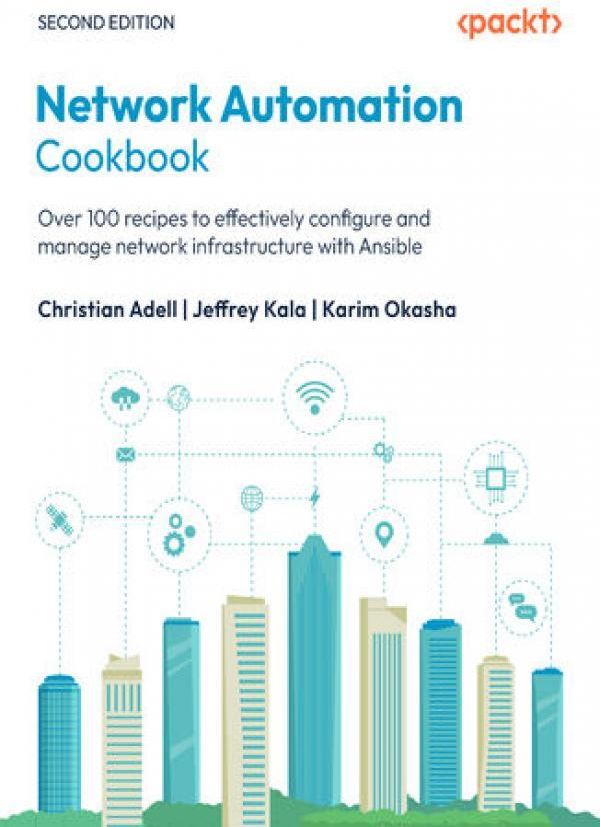 Network Automation Cookbook, now in its second edition, is your essential guide to building robust network automation workflows across modern hybrid infrastructures. Building on the foundation laid in the first edition, this version dives deeper into Ansible’s role in automating network infrastructure, expanding coverage to include modern use cases across enterprise and cloud networks.The book introduces Ansible’s core concepts, such as playbooks, inventories, variables, loops, and templates, and progresses to advanced topics such as parallelism, fact caching, custom filters, and modular design. You will automate real-world scenarios using Nokia SR, Cisco IOS, Juniper, and Arista devices in a fully reproducible virtual lab. The chapters also help you explore cloud automation for AWS, Azure, and Google Cloud, and integrate validation tools such as PyATS, Batfish, and Nautobot. New chapters cover event-driven automation, AWX for workflow execution, and Terraform integration. By using hands-on labs and fully reproducible recipes, you can practice real-world scenarios and reinforce your skills.By the end of this book, you’ll be well-equipped with the tools and workflows to automate infrastructure efficiently with Ansible. Spis treści: 1. Why Ansible for Network Automation?2. Building Blocks of Ansible3. Advanced Ansible Concepts4. Building Data Center Networks with Arista5. Automating a Juniper Network Core Using Ansible6. Managing Nokia SR Devices Using Ansible7. Administering a Multi-Vendor Network with NAPALM and Ansible8. Deploying and Operating AWS Networking9. Deploying and Operating Azure Networking10. Deploying and Operating GCP Networking11. Network Validation with Batfish12. Building a Network Inventory with Nautobot13. Simplifying Automation with AWX14. Event-Driven Automation with Ansible15. Terraform and Ansible Dancing Together16. Appendix - The Lab
