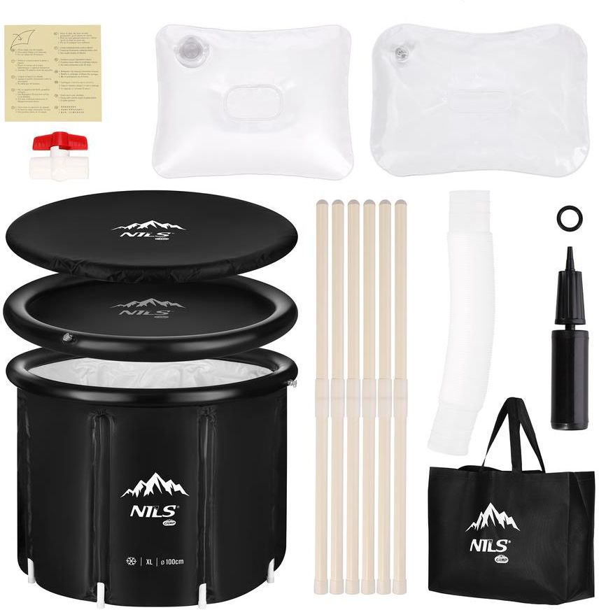 Przenośna Wanna Beczka Balia Regeneracyjna Do Morsowania ICE TUBE 612 L Dane techniczne Numer katalogowy: NC0122 Kolor: Czarny Materiał: PVC (60%), poliester (25%), pianka izolacyjna (15%) Średnica: 100 cm Wysokość: 78 cm Pojemność maksymalna: 612 L Waga: 4,23 kg Zakres obsługiwanej temperatury: od -25°C do 50°C Zestaw zawiera: 1x Wanna do kąpieli lodowej NC0122, 8x Wsporniki konstrukcyjne, 1x Ręczna pompka, 1x Wąż spustowy, 1x Pokrywa termiczna, 1x Osłona przeciwdeszczowa, 1x Przenośna torba, zestaw naprawczy, nasz firmowy kalendarzyk NC0122 Ice Tube od Nils Camp to kompaktowa, przenośna wanna do regeneracyjnych kąpieli lodowych, idealna dla osób dbających o zdrowie, kondycję i szybką regenerację organizmu. ❄️ Dzięki solidnej konstrukcji i wysokiej jakości materiałom możesz cieszyć się efektem krioterapii we własnym ogrodzie, na tarasie czy w domowej strefie relaksu. Regularne morsowanie wspiera regenerację mięśni, poprawia krążenie i wzmacnia odporność, czyniąc NC0122 Ice Tube doskonałym wyborem zarówno dla sportowców, jak i osób dbających o zdrowy styl życia. 💪🌿 Zalety produktu Regeneracja mięśni – przyspiesza usuwanie kwasu mlekowego, zmniejsza stan zapalny i łagodzi bóle potreningowe. ️‍♂️ Poprawa krążenia – zimne kąpiele dotleniają organizm i wspierają układ krwionośny. 💙 Wzmocnienie odporności – regularne morsowanie zwiększa odporność organizmu na infekcje. 🛡️🌿 Komfort użytkowania – łatwy montaż, szybkie napełnianie i wygodne spuszczanie wody. 💧⏳ Trwała i lekka konstrukcja – wykonana z PVC wzmocnionego poliestrem i pianką izolacyjną, odporna na niskie temperatury. 🏗️❄️ Dlaczego warto wybrać NC0122 Ice Tube? Skuteczna regeneracja: Redukuje bóle mięśniowe i przyspiesza proces regeneracji po intensywnym wysiłku fizycznym. Poprawa samopoczucia: Kąpiele lodowe powodują naturalny wyrzut endorfin, redukując stres i poprawiając nastrój. Łatwość użytkowania: Prosty montaż, szybkie napełnianie i możliwość łatwego spuszczania wody. Izolacja termiczna: Dzięki pokrywie termicznej woda utrzymuje optymalną temperaturę przez dłuższy czas. Przenośna konstrukcja: Lekka i kompaktowa wanna idealnie nadaje się do przechowywania i transportu. Najczęstsze pytania 1. Czy wanna NC0122 Ice Tube jest odpowiednia dla początkujących? Tak, jednak zaleca się rozpoczęcie morsowania od krótkich sesji i stopniowe przyzwyczajanie organizmu do niskich temperatur. 2. Jak długo powinno trwać morsowanie w wannie? Zalecany czas kąpieli wynosi od 2 do 5 minut, w zależności od indywidualnej tolerancji organizmu na zimno. 3. Czy wanna nadaje się do użytku na balkonie? 🏢 Tak, ale przed napełnieniem wodą należy upewnić się, że konstrukcja balkonu wytrzyma obciążenie. 4. Jakie są główne korzyści zdrowotne z używania NC0122 Ice Tube? 💪 Regularne kąpiele lodowe poprawiają regenerację mięśni, wzmacniają odporność, poprawiają krążenie oraz wspierają metabolizm. 5. Czy materiał wanny jest odporny na uszkodzenia? 🔒 Tak, wanna została wykonana z PVC wzmocnionego poliestrem i pianką izolacyjną, co zapewnia jej trwałość i odporność na niskie temperatury.