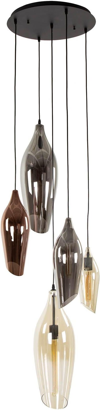 LAMPA WISZĄCA BROOME II SZKLANA Lampa wisząca BROOME to idealne rozwiązanie do każdego pomieszczenia w stylu industrialnym i nowoczesnym, gdzie lampa ta będzie pełniła funkcję nie tylko oświetlenia, ale także przepięknej dekoracji, która bez wątpienia przykuję uwagę każdego. Podstawę lampy stanowi metalowa konstrukcja w ciemnym kolorze, która dodaje jej charakteru i ciekawego wyglądu. Główną części lampy stanowi pięć różnokolorowych szklanych klosze, których niesamowita forma oraz barwa sprawiają, że prezentują się zjawiskowo i idealnie komponują się z ciemnym kolorem podstawy. Dodatkowym atutem lampy jest wysokość, którą można swobodnie regulować do 180 cm oraz dostosowując ją odpowiednio do własnych potrzeb. Dzięki otwartej konstrukcji kloszy żarówki pełnią nie tylko funkcję oświetleniową, ale także dekoracyjną. To rozwiązanie pozwala lampie emitować ciepłe, rozproszone światło, które wprowadza przytulny nastrój. Lampa wisząca BROOME sprawdzi się idealnie w każdym salonie, jadalni oraz korytarzu gdzie doda wnętrzu ciepła i charakteru, a także dzięki niesamowitej strukturze klosza przepięknie rozświetli pomieszczenie. Lampa sprzedawana jest bez żarówek. W serii BROOME występują również lampy w różnych modelach, wielkościach oraz kolorach - patrz produkty powiązane. Lampa sprzedawana jest bez żarówek. Zalecane jest użycie źródła światła LED. Zachęcamy do zapoznania się z naszą ofertą ozdobnych żarówek LED Kliknij tutaj i sprawdź. Na prezentowanych zdjęciach występuje model żarówki NL18473/39A oraz NL18475/39A. Nlhome to meble, oświetlenie i akcesoria wnętrzarskie produkcji holenderskiej. Marka działa już na kilkunastu rynkach europejskich, zdobywając sukcesywnie nowe terytoria, a jej historia sięga lat 60-tych. W ofercie znajdziemy jedne z najciekawszych rozwiązań wnętrzarskich, dalekie od skandynawskiej rutyny i nijakości - nlhome to brand dla odważnych Klientów. Designerskie, solidne, niepowtarzalne - bo takie w rzeczy samej są. Styl tej marki jest stylem niepokornym, wychodzącym w przyszłość - jednak lubiącym wykorzystywać surowce naturalne. Momentami może sprawiać wrażenie nieco surowego, ale mimo to niezwykle dekoracyjnego.