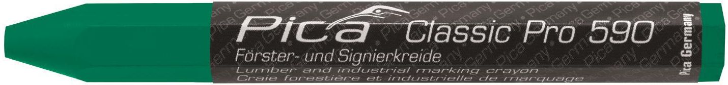 przemysłowa kreda ZIELONA, sześciokątna serii Classic PRO 590 [590/36] do trwałego znakowania większości powierzchni, grubość kredy 12mm, długość 120mm; kreda bardzo mocno nasyca znaczony przedmiot, posiada papierowy uchwyt. Kredę można zakładać do specjalnego uchwytu z automatycznym wysuwem 588-10. kredą serii Classic 590 można znaczyć na: drewnie (suchym i mokrym), drzewie, cegle, murze, gunie, plastiku, stali; z serii PICA Classic PRO 590 dostępne są również w innych kolorach: z końcówką okrągłą: biały 590/52 żółty 590/44 czarny 590/46 czerwony 590/40 niebieski 590/41 zielony 590/36 jest możliwość kupienia kredy w opakowaniu zbiorczym - po 12 sztuk