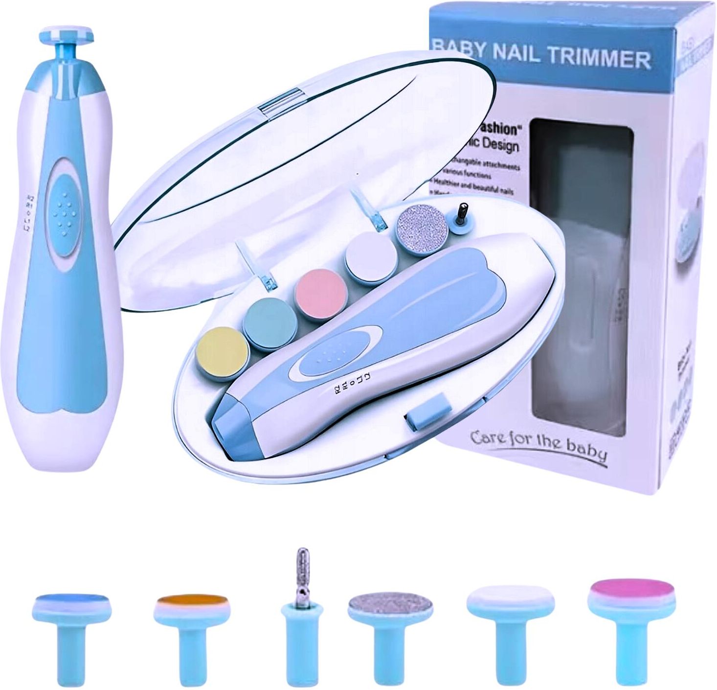 Pilniczek Elektryczny Do Paznokci Dla Niemowląt Zestaw Do ObcinaniaNie musisz już więcej martwić się o przycinanie paznokci swojego dziecka!Przedstawiamy zestaw do obcinania paznokci, czyli idealne rozwiązanie do łatwej i delikatnej pielęgnacji paznokci dziecka.Ten wykonany z najwyższą starannością i troską obcinacz do paznokci gwarantuje bezpieczne i przyjemne doświadczenie zarówno dla Ciebie, jak i Twojego dziecka.Nasz obcinacz do paznokci stanowi bezbolesną alternatywę dla konwencjonalnych obcinaczek do paznokci.Technologia przycinania, która eliminuje obawyDzięki naszemu ultramiękkiemu pilnikowi do paznokci możesz łatwo i delikatnie przycinać i polerować delikatne paznokcie dziecka, zapewniając mu komfort i bezpieczeństwo.Dzięki wyposażeniu w przednie światło LED i bardzo cichy silnik, możesz przycinać paznokcie dziecka gdy śpi bez jego świadomości.Sześć głowic szlifujących spełniających wszystkie wymaganiaZestaw zawiera trzy amortyzowane nasadki z papierem ściernym zaprojektowane dla różnych etapów wzrostu dziecka i różnych wymagań, podczas gdy pozostałe trzy nasadki są przeznaczone do użytku przez dorosłych.Łatwy w użyciuWłóż 2 baterie AA i bezpiecznie zamknij pokrywę (baterie nie są dołączone).Wybierz odpowiednią głowicę mielącą w zależności od wieku.Przymocuj wybraną głowicę mielącą do urządzenia.Naciśnij przycisk, aby ustawić obroty i prędkość na komfortowym poziomie.Ostrożnie przycinaj paznokcie, aż osiągniesz pożądaną długość.