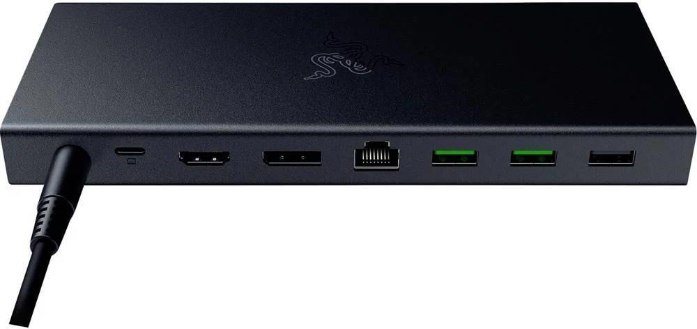 Razer - Docking station - USB-C / USB-A Stacja dokująca Przekształć swoje miejsce pracy w najlepsze miejsce do gier i produktywności dzięki stacji dokującej Razer USB 4 Dock (USB typu C). Zasilana przez ultraszybką łączność USB 4, zjednocz swój komputer stacjonarny lub konfigurację mobilną dzięki 14-portowej stacji dokującej z podwójnym wyjściem wyświetlacza, ciągłym dostarczaniem energii i ultraniskim opóźnieniem dla wszystkich urządzeń. Specyfikacja: Rodzaje wejść / wyjść USB 2.0 - 3 szt. USB 3.1 Typ A - 2 szt. USB 3.2 Gen. 2 - 1 szt. USB 3.0 Typ C - 1 szt. HDMI - 1 szt. RJ-45 (LAN) - 1 szt. DisplayPort - 1 szt. Gniazdo słuchawkowe - 1 szt. Czytnik kart pamięci SD - 1 szt. Czytnik kart pamięci Micro SD - 1 szt. USB 3.2 Gen. 2 Typu-C (Power Delivery) - 2 szt.