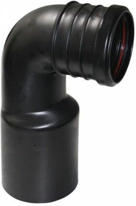 kolano odpływowe WC 90º, DN90/DN100, z trójstopniową regulacją z czarnego tworzywa sztucznego PE z trójstopniową regulacją do zgrzewania z rurą PE lub do montażu na wcisk z inną rurą odpływową z korkiem ochronnym na czas montażu