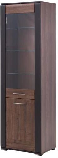 WITRYNA NAOMI Dwudrzwiowa witryna w kolorze orzecha z wstawkami w kolorze wenge to propozycja do każdego nowoczesnego wnętrza. Powyższe zestawienie kolorów będzie świetnie prezentować się w jasnych pomieszczeniach. Na półkach szklanych można umieścić dowolną dekorację, a dodatkowo za dopłatą …