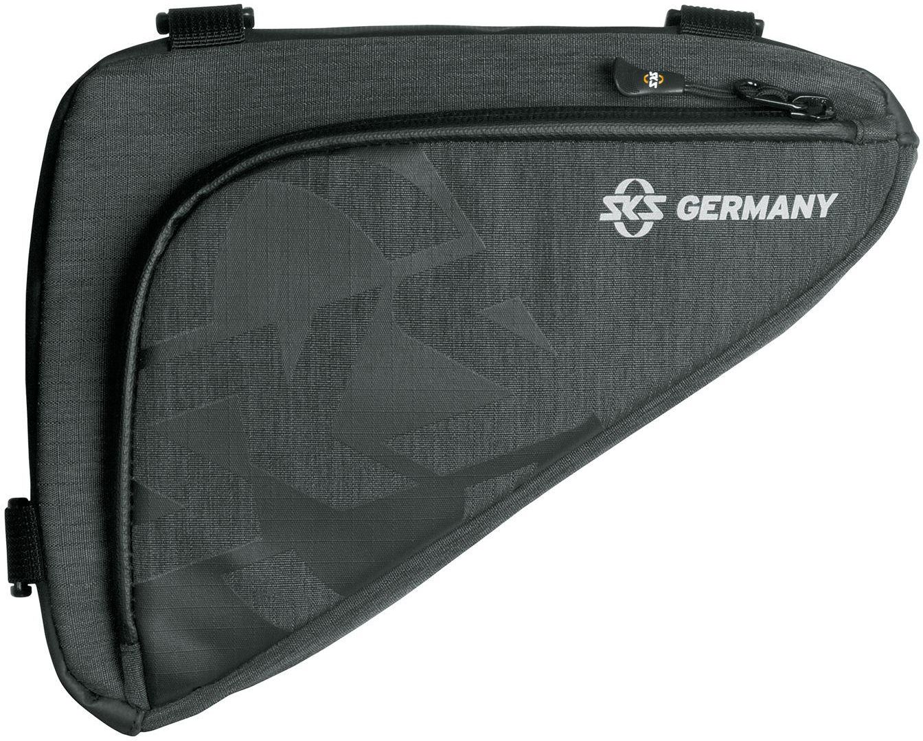 Torba na ramę SKS Traveller Edge to wygodna propozycja skierowana w stronę miłośników trekkingu i jazdy miejskiej. Cechuje się wygodnym krojem, dobrą wytrzymałością oraz estetycznym wzornictwem. Jeśli szukasz produktu, który pomieści, a także zabezpieczy przewożone przez Ciebie drobiazgi, będzie doskonałym wyborem. Model został wykonany z odpornej na przetarcia tkaniny, która wykazuje właściwości wodoodporne. Projektanci marki zwrócili uwagę również na detale. Wzmocnione, zalaminowane zamki błyskawiczne uniemożliwiają przenikanie kropel. Dzięki temu możesz mieć pewność, że spakowane klucze, dokumenty czy narzędzia nie zostaną przemoczone. Dużym atutem torby jest system wewnętrznych kieszeni, które pozwalają na wygodne rozmieszczenie bagażu. Cechą wyróżniającą ten model od innych jest wygodna pętla na kompaktową pompkę. Co ważne, wnętrze posiada pomarańczową podszewkę, ułatwiającą znalezienie potrzebnych przedmiotów. Projektanci marki SKS wierni są stonowanej, monochromatycznej stylistyce. Sprawia to, że modele zyskują uniwersalny wygląd, który doskonale będzie pasował do każdej barwy ramy. Jedynymi elementami ozdobnymi są odblaskowe loga, które zwiększają widoczność cyklisty po zmroku. Model montowany jest za pomocą wygodnych pasków na rzep. Zostały one zabezpieczone gumą, co chroni ramę przed porysowaniem. Zastosowane rozwiązanie gwarantuje, że produkt będzie doskonale pasował do większości modeli rowerów.