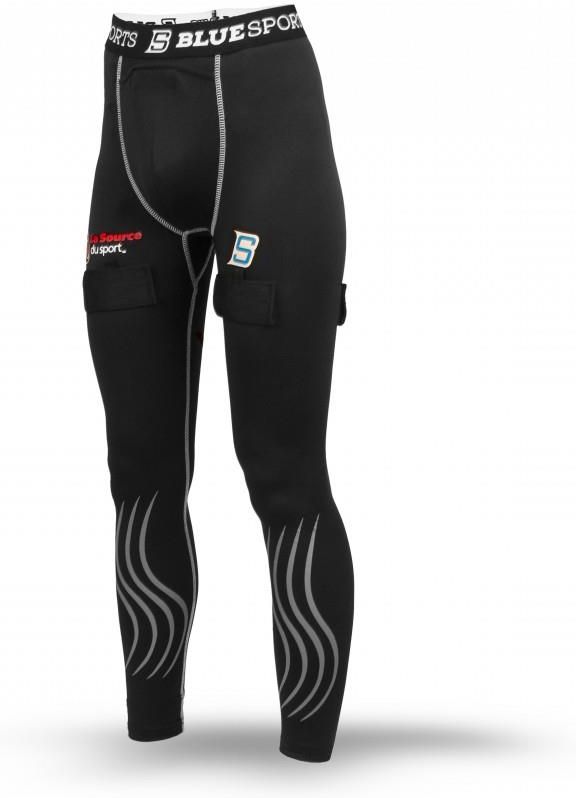 Spodnie kompresujne ribano z rzepami BlueSports Sr. Technologia odprowadzania wilgoci z poliestru i elastanu. Oddychająca wkładka z poliestrowej siatki eliminuje nadmiar ciepła. Silikonowe paski na goleniach, które pomagą utrzymać ochraniacze goleni na miejscu. Zapinane na rzepy zakładki trzymajace skarpety hokejowe na miejscu. Posiadają twardą miseczkę zapewniającą maksymalną ochronę i komfort w okolicy pachwiny.