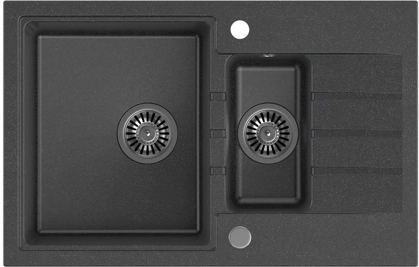 Quadron Zlewozmywak granitowy Peter 156 czarny HCQP57850CZK Produkty wykonane z konglomeratu ok. 74% kwarcu granitowego związanego wysokiej klasy żywicami charakteryzują się inspirującym stylem i nietuzinkowymi atrybutami. Niewątpliwym atutem jest połączenie fascynującej elegancji produktów z niespotykanymi walorami użytkowymi. Kolekcja Peter „The Greatest” może szczycić się oszałamiającymi pojemnościami komór, a przez to, niezrównanymi możliwościami wykorzystania produktu. Już nigdy podczas przyjęcia z przyjaciółmi nie zabraknie miejsca na naczynia. Skup się na zabawie, a resztę zostaw Peterowi. W przypadku modelu Peter 111 oddajemy do dyspozycji aż 35 litrów pojemności komory, co według wszelkiego prawdopodobieństwa, jest absolutnym rekordem w tej klasie produktów. Atrakcyjna rzeźba powierzchni ociekowej, opadająca w stronę komory i lekko wnikająca w jej toń, skutecznie odprowadza wodę, budując równocześnie efektowną i niebanalną plastykę formy produktu. Delikatnie obniżona powierzchnia wokół komory, komponująca rant, przygotowana jest na przyszłe wykorzystanie akcesoriów, które będą miały na celu skrócenie czasu pracy i uproszczenie przygotowywania posiłków. Peter to kolekcja skierowana do aktywnych młodych ludzi, szukających intrygującego wzornictwa połączonego z niespotykaną funkcjonalnością. To kolekcja dla samotnych i dla par. To produkty, które będą się razem z Tobą bawić i razem z Tobą sprzątać po zabawie... Razem przygotowywać posiłki i razem je spożywać… Wymyśl co chcesz zrobić i zrób to razem z Peterem! Nieważne czy masz małą kuchnię w kawalerce, czy wielką, otwartą na salon… Peter wszędzie będzie czuł się znakomicie! Zapraszaj kogo chcesz i kiedy chcesz – Peter „The Greatest” zawsze w pełnej gotowości! PETER – from kitchen with love! Zlewozmywak PETER 156 Długość zlewozmywka: 780 mm Szerokość zlewozmywaka: 500 mm Głębokość zlewozmywaka: 200 mm Ilość komór: 1,5 Wymiary komory: 350 x 420 + 160 x 300 mm Materiał: Steingran Wykończenie/kolor: czarny Typ zabudowy: wpuszczany Wersja: odwracalny Podbudowa: 60 cm Wymiary wycięcia w blacie: 76 x 48 cm Wycięte otwory montażowe 35 mm: 2 Zaślepka do otworu: tak Syfon i odpływ w kpl.: tak Możliwość podłączenia zmywarki/pralki: tak Odpływ: 3 1/2" Zamknięcie odpływu/rodzaj korka: zatyczkowy