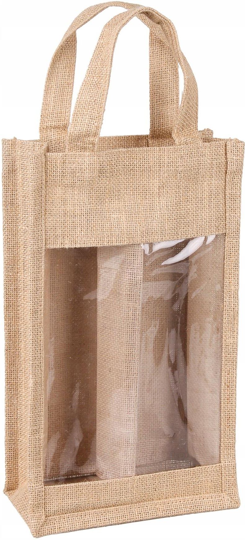 Tin Tours Jutowa Torebka Z Okienkiem Wino Alkohol 2 Butelki 19X10X33 45cm Rybnik