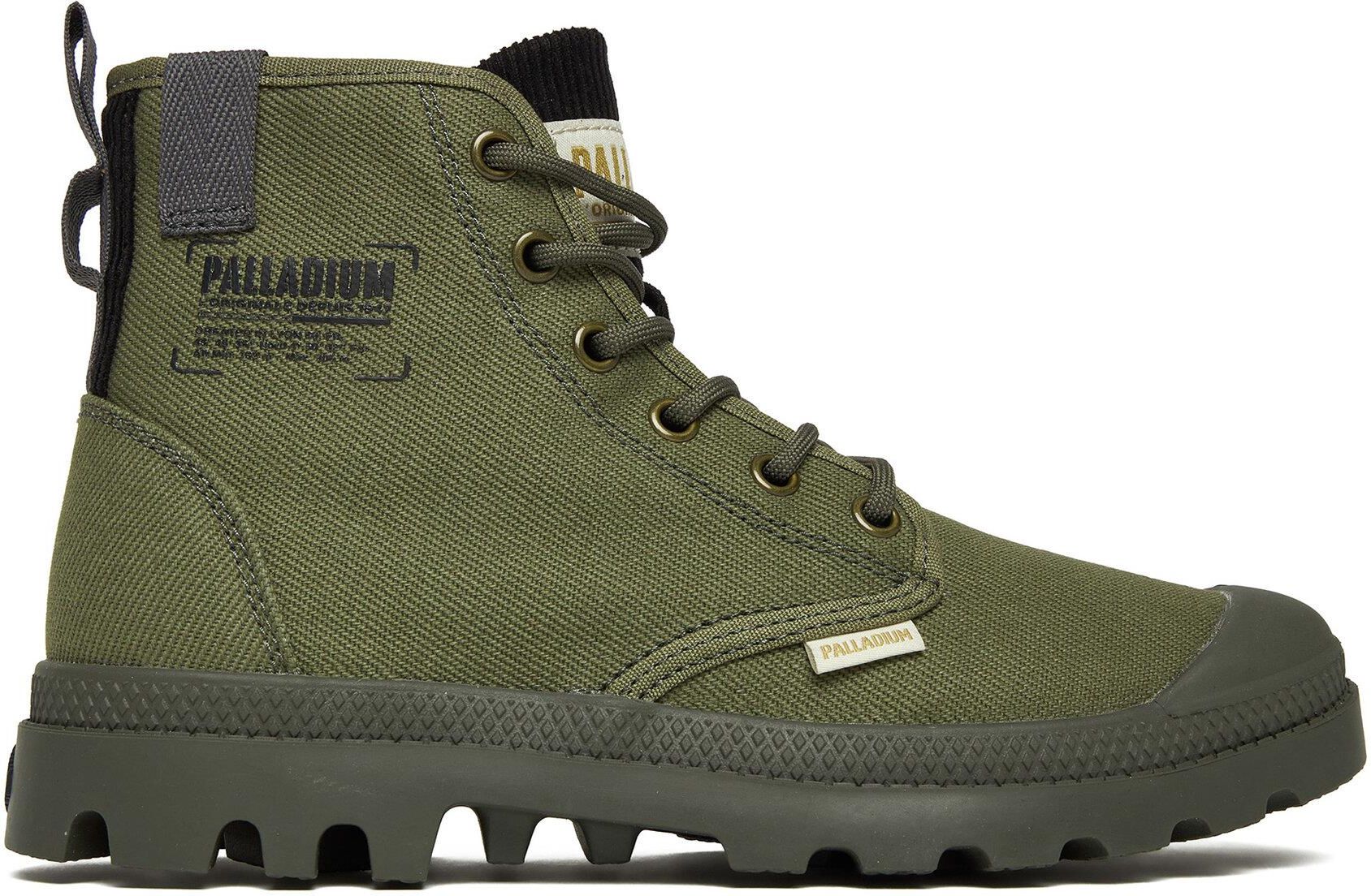 Buty Wysokie Męskie Trampki Palladium Pampa Michigan 79496 Oliwkowe Symbol: PA152-a Kolor: Oliwkowy Rozmiar: 45 (29.5 cm) Wiecej rozmiarów i kolorów znajdziesz na pozostałych aukcjach. Opis produktu Męskie trampki Palladium Pampa Michigan to obuwie inspirowane wojskowym dziedzictwem marki i industrialnym stylem Detroit. Cholewka buta za kostkę została wykonana w 100% z organicznej bawełny BCI, co gwarantuje trwałość i przyjazność dla środowiska. Miękka bawełniana podszewka oraz wkładka z poliestru zapewniają komfort i odpowiednią wentylację podczas codziennego noszenia. Solidna, charakterystyczna gumowa podeszwa zewnętrzna zapewnia przyczepność i wytrzymałość, idealną do miejskich i plenerowych aktywności. Sznurowane zapięcie umożliwia dobre dopasowanie do stopy i stabilność w trakcie chodzenia. Detale z kordu oraz wzmocniony nosek dodają butom surowego, ponadczasowego charakteru. Elementy brandingowe, takie jak nadruk logo na boku, metka na języku i termotransferowa wkładka, podkreślają autentyczność i francuski styl marki Palladium. Galeria zdjęć