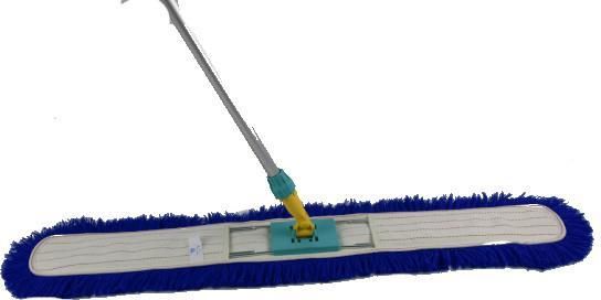 Kompletny mop o wkładzie akrylowym, o szerokości 40 cm. Idealnie sprawdza się w łatwym zamiataniu podłóg. W skład kompletu wchodzi kij, stelaż oraz mop akrylowy. Mop ten jest podstawowym narzędziem do zamiatania podłóg np. w szpitalach czy szkołach. Nadaje się zarówno do małych jak i dużych powierzchni, a dzięki swojej strukturze oraz sprzątania na mokro, nie powoduje wzbijania kurzu, jak np. tradycyjna miotła. Sprawdza się również w miejscach trudnych do czyszczenia, jak np. po remontach, w pomieszczeniach ze zwierzętami. Czyści znacznie dokładniej niż miotła. Rozmiar: 40 cm, 60 cm, 80 cm, 100 cm