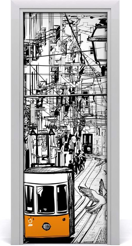 Tulup.Pl Naklejka samoprzylepna na drzwi Tramwaj w Lizbonie 85x205 cm (DOORSTICKERF76628297) Rybnik