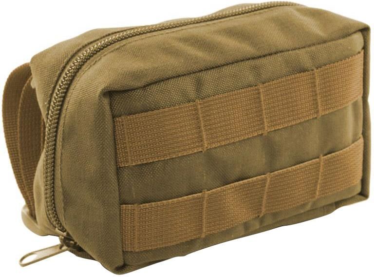 Zasobnik Wisport Cordura Coyote Pojemny zasobnik wykonany z bardzo mocnej Cordury. Przeznaczony do przenoszenia elementów wyposażenia, umundurowania, środków pierwszej pomocy i innych akcesoriów przydatnych w terenie. Można go zamocować do kamizelki taktycznej, pasa czy szelek. Na froncie naszyto system taśm Molle, co pozwala na przytwierdzenie do zasobnika dodatkowych elementów oporządzenia taktycznego. Wewnątrz zasobnika znajdują się gumy i kieszonki na mniejsze przedmioty. Dane techniczne Kolor: coyote Materiał: Cordura Wymiary: 17 x 10 x 8 cm Producent: Wisport, Polska