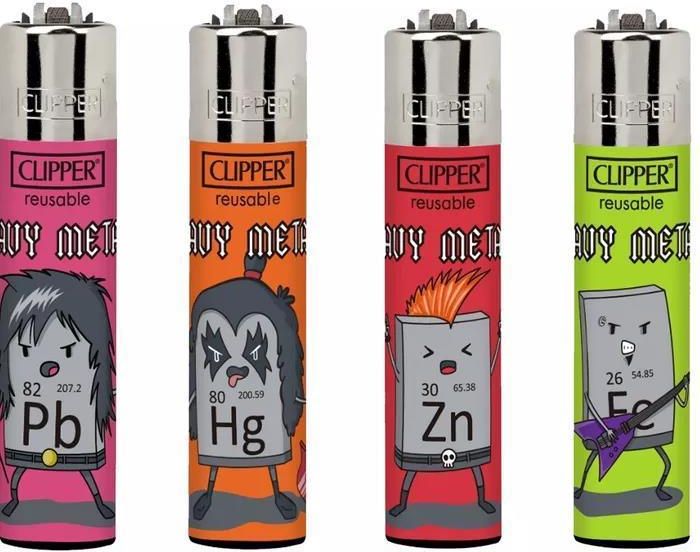 Zapalniczka Clipper wzór HEAVY METALS Zapalniczka krzesiwowa Clipper Classic we wzorze Heavy Metal. 4 niebanalne nadruki do wyboru - który znajdzie sie w Twojej kolekcji? Clippery posiadają wyjmowany ubijak - wystarczy, że pociagniesz iskrownik zapalniczki w górę. 1 ładowanie gazem umożliwia ok 3000 zapłonów.