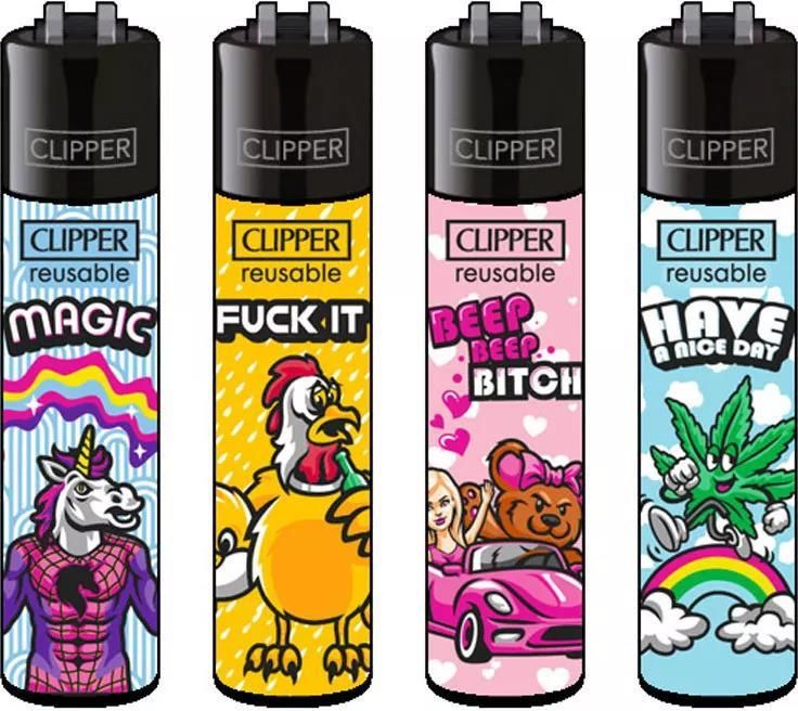 Zapalniczka Clipper wzór MIX SLOGAN 6 Zapalniczka krzesiwowa Clipper we wzorze MIX SLOGAN #6. 4 zabawne motywy do wyboru. Clipper posiada obudowę wykonaną z odpornego na zniszczenia tworzywa sztucznego. Pełne naładowanie umożliwia ok 3000 zapłonów.
