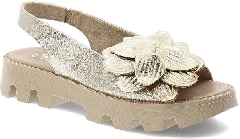 Złote Sandały Chebello Eleganckie Obuwie Damskie Z Kwiatem