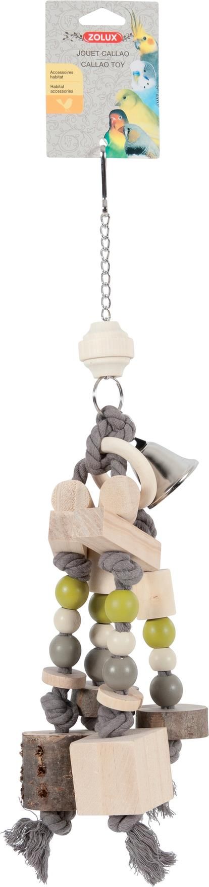 Zabawka drewniana Callao dla papugZabawka do zawieszenia CALLAO to idealny dodatek do klatki dla papug i średnich papużek z zakrzywionymi dziobami. Wykonana z połączenia elementów drewnianych, kolorowych sznurków, koralików oraz dzwoneczka. Produkt wyposażono w praktyczny karabińczyk, dzięki czemu …