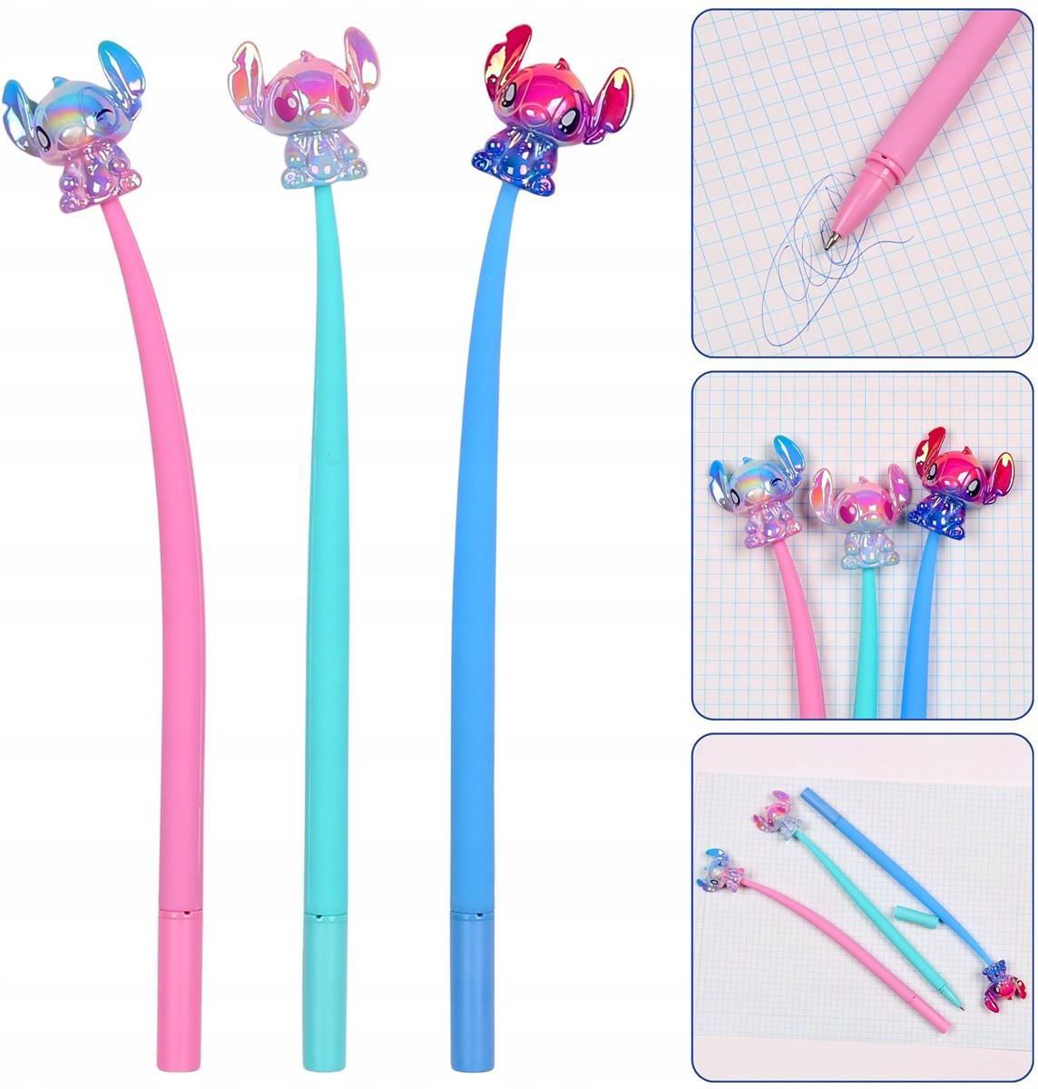 DISNEY Stitch Długopis żelowy, silikonowy z figurką,ścieralny,szkolny 0,7mm Długopis żelowy Disney Stitch z silikonową figurką to wyjątkowy gadżet dla fanów tej uroczej postaci z bajki. Wykonany z miękkiego silikonu, posiada elastyczny korpus i ozdobną figurkę Stitcha na górze. Dzięki niebieskiemu żelowemu tuszowi, pisanie jest płynne i wygodne. Zamykana skuwka chroni wkład przed wysychaniem, co czyni go idealnym do szkoły, biura lub codziennych notatek. ------------------------------------- kod produktu: 91347PTR Wzory długopisów są wybierane losowo, co dodaje element niespodzianki i sprawia, że każdy egzemplarz jest wyjątkowy. Dokonując zakupu na tej aukcji, otrzymasz 1 długopis z losowym wzorem. Najważniejsze cechy produktu Oficjalny produkt Disney – ozdobiony postacią Stitcha. Elastyczny silikonowy korpus – zapewnia wygodny chwyt i unikalny design. Zamykana skuwka – ochrona przed wysychaniem tuszu. Żelowy niebieski tusz – płynne i wygodne pisanie. Ozdobna figurka Stitcha – dodaje długopisowi wyjątkowego charakteru.