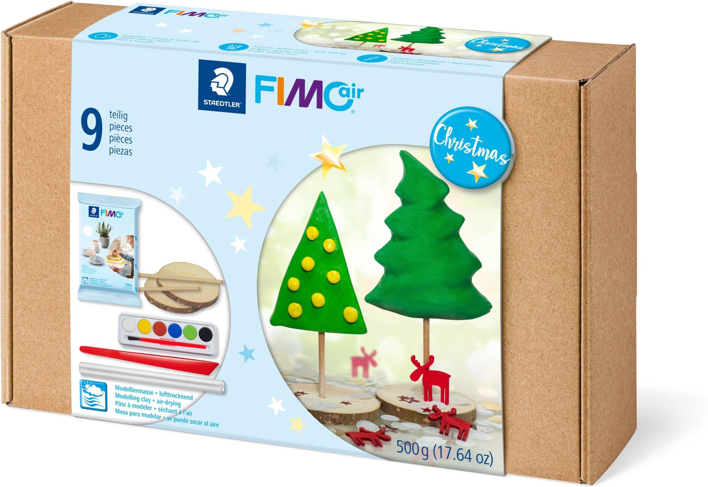 Zestaw świąteczny FIMOair zawierający akcesoria i instrukcje krok po kroku. Specjalnie dla początkujących i hobbystów. Niezwykle łatwe tworzenie unikalnych dekoracji. Jak ceramika, ale bez piekarnika. Suszenie na powietrzu, utwardzanie trwa do 24 godzin. Glina ma jednolitą konsystencję i jest gotowa do użycia. Gdy dekoracja stwardnieje, można ją spiłować, nawiercić, przeszlifować i pomalować lub polakierować. Zawartość: Glinka schnąca na powietrzu FIMOair 500 g biała, 1 pędzelek, 2 farby akrylowe w kolorze zielonym i żółtym, 2 narzędzia do modelowania oraz 2 plastry drewna i drewniane patyczki. Warto wiedzieć:- Dekorację można suszyć w temperaturze pokojowej- W zależności od grubości, całkowite wyschnięcie zajmuje od kilku godzin do kilku dni- Regularnie obracaj i odwracaj dekorację podczas schnięcia. Zapewni to, że wyschnie równomiernie ze wszystkich stron i nie wypaczy się.