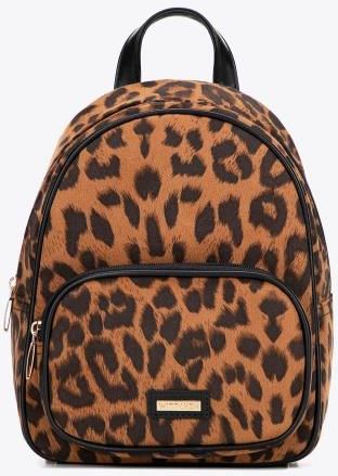 Damski plecak w panterkę – modny i funkcjonalny dodatek Ten plecak w panterkę łączy charakterystyczny, modny wzór z praktycznym wnętrzem. Posiada bezpieczny zamek błyskawiczny, a w środku znajdują się dwie kieszenie, w tym jedna zamykana na suwak. Przednia kieszeń pozwala mieć pod ręką wszystkie najpotrzebniejsze drobiazgi, a regulowane szelki i wygodny uchwyt do ręki dają pełną swobodę noszenia, dopasowując plecak do Twojego stylu i codziennych potrzeb. wymiary zewnętrzne: 26 x 9 - 12 x 10 cm materiał: 100 % poliester podszewka: 100% poliester wnętrze: 1 główna komora a w niej: jedna kieszonka otwarta oraz jedna kieszonka zamykana na zamek z przodu: jedna mała kieszonka zamykana na zamek długość szelek: 68 - 84 cm waga: 0,47 kg elementy metalowe: złote 2 lata gwarancji producenta