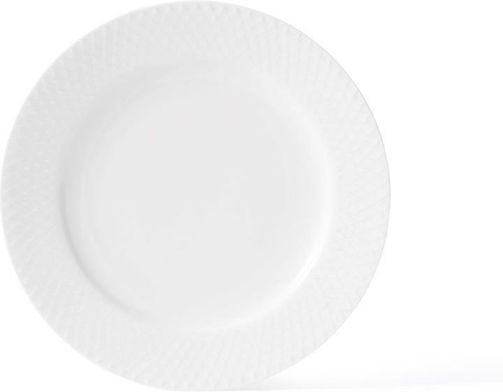 Klasyczna, biała zastawa stołowa to must-have każdego domu. Marka Lyngby Porcelain zaprojektowała piękną kolekcję Rhombe składającą się z talerzy, misek i akcesoriów obiadowych. Wszystkie naczynia z kolekcji wykonano z wysokiej jakości szkliwionej białej porcelany, by pokreślić elegancki i klasyczny styl. To, co wyróżnia tę zastawę to dekoracyjne żłobienia w kształcie rombów widoczne na brzegach talerzy bądź całej zewnętrznej powierzchni innych naczyń. Porcelanowy talerz Rhombe to również element z kolekcji zastawy stołowej. Posiłki będą w nim smakować o niebo lepiej! Będzie idealny na co dzień, jak i na specjalne uroczystości – imprezy rodzinne czy święta. Cudownie ozdobi stół jadalny ale będzie również funkcjonalny. Średnica: 21 cm. UWAGA! Produkt został wykonany ręcznie i może różnić się wizualnie od przedstawionego na zdjęciu.