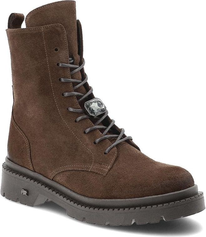 Brązowe Botki Karino Modne Skórzane Obuwie Damskie Rydułtowy