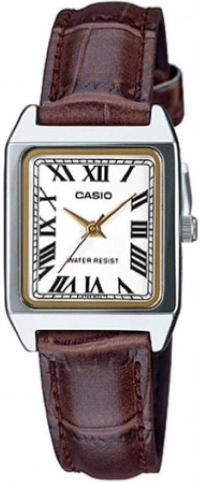 Casio LTP-V007L-7B2 Rodzaj Damskie Gwarancja 2 lata Kraj pochodzenia Japonia Mechanizm Kwarcowy Wodoszczelność WR30 Materiał koperty Stal Materiał paska/bransolety Skóra naturalna Szkiełko Mineralne Szerokość koperty 22mm Grubość koperty 7mm